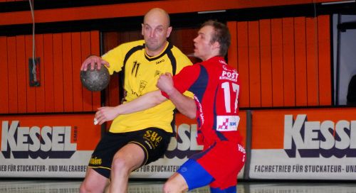 Obwohl die Korschenbroicher neben den bereits bekannten Ausfällen von Dennis Marquardt, Mathias Deppisch und Lukas Esser auch noch auf Kai Faltin verzichten mussten und Marcel Görden nur unter Schmerzen spielen konnte, boten sie dem Überraschungsteam der Liga Paroli und hätten die Angerhalle zu Coburg auch als Sieger verlassen können. TVK-Coach Khalid Khan entschied sich vor dem Anpfiff, seinen einzigen verbliebenen Linkshänder, David Breuer, auf die Rechtsaußenposition zu setzen – gemeinsam mit seinem Bruder Simon bildete er den rechten Flügel der Gäste. Andrej Kogut begann auf der Mittelposition, Fabian Bednarzik auf Halblinks, wo er eine tolle Partie bot und den verletzten Marquardt sehr gut ersetzte. Marcel Görden durfte erneut als Linksaußen ran und an den Kreis stellte Khan Routinier Jörn Ilper. In der Abwehr wechselte Bednarzik mit Jens Warncke. Das Spieltempo war vom Anwurf weg sehr hoch. Beide Teams setzten auf schnelle Spielzüge und fackelten im Abschluss nicht lange. Nach ausgeglichenem Beginn gelang es den Coburgern, sich Mitte der ersten Halbzeit auf drei Tore abzusetzen. Insbesondere Kamil Piskac am Kreis bereitete der TVK-Abwehr einiges Kopf zerbrechen. In der 19. Minute sah Khalid Khan sich dann genötigt, beim Stand von 14:11 seine erste Auszeit zu nehmen. Seine Ansprache zeigte Wirkung, denn bis zur Pause holte sein Team den Rückstand, der zwischenzeitlich auf fünf Tore (16:11, 21.) angewachsen war, auf – Piskac, bis zur Auszeit schon sechs Mal erfolgreich, gelang kein weiterer Treffer im ersten Durchgang. Dass der TVK zur Pause nur noch mit einem Tor zurücklag, resultierte auch darin, dass Khan mehrfach seinen Spielern die bereits gegen Oftersheim-Schwetzingen erprobte 1:5-Abwehr verordnete – ein taktisches Mittel, auf das die Coburger keine Rechte Antwort wussten. Großes Anteil am knappen Pausenstand hatte auch TVK-Keeper Tobias Kokott. In der Schlussphase der ersten Hälfte konnte er mehrfach gut parieren und gewann in Minute 28 sogar ein Siebenmeterduell gegen den HSC-Toptorjäger Anton Lakisa. Anfang der zweiten dreißig Minuten bot sich den 1.200 Zuschauern in Coburg zunächst ein unverändertes Bild. Beide Mannschaften gingen hohes Tempo. Der HSC 2000 nutzte die sich ihm bietenden Chancen jedoch besser aus, als das Gästeteam und konnte sich in der 38. Minute auf 24:20 absetzen. Doch die Korschenbroicher legten ihrerseits noch einmal zu und holten auch diesen Rückstand wieder auf (27:26, 43.). Im Anschluss sah es so aus, als wenn der TVK seinem hohen Aufwand Tribut zollen müsse. Trotz der inzwischen auf beiden Seiten schlechten Chancenverwertung gelang es den Coburgern, sich binnen fünf Minuten erneut auf vier Treffer abzusetzen – Khan musste erneut zur Timeout-Karte greifen (30:26, 49.). Während dieser kleinen Verschnaufpause mobilisierte er bei seinen Spielern noch alle verbliebenen Kräfte und schwor sie noch einmal ein. Welche Worte er zu diesem Zweck auch gewählt hat – es müssen die richtigen gewesen sein. Sechs Minuten vor dem Spielende markierte Marcel Görden das 34:32. Nach einem Foulspiel musste Coburgs Kapitän Florian Lendner in der 56. für 2 Minuten auf der Bank Platz nehmen, den fälligen Siebenmeter verwandelte David Breuer sicher gegen Havard Martinsen zum 34:33. Unmittelbar darauf vergab er die große Chance zum Ausgleich, als er nach einem Ballgewinn in der Abwehr den gut gespielten Tempogegenstoß gegen Martinsen nicht verwandeln konnte. Überhaupt waren es die beiden Keeper, die in der Schlussphase der Begegnung im Fokus standen. Auf Seiten des TVK war es Tobias Kokott, der den Coburger Angreifern den Zahn zog und in den letzten sechs Minuten nicht mehr überwunden werden konnte. Sein Gegenüber Martinsen musste noch einmal hinter sich greifen. 58:50 zeigte die Hallenuhr an, als Marcel Görden von Linksaußen in den Kreis einschwebte und sicher verwandelte. Die folgenden 70 Sekunden stemmte sich der TVK in der Abwehr noch einmal mit aller Macht gegen die HSC-Angreifer und konnte drei Torversuche vereiteln. Somit blieb es beim 34:34 Endstand. Trainerstimmen