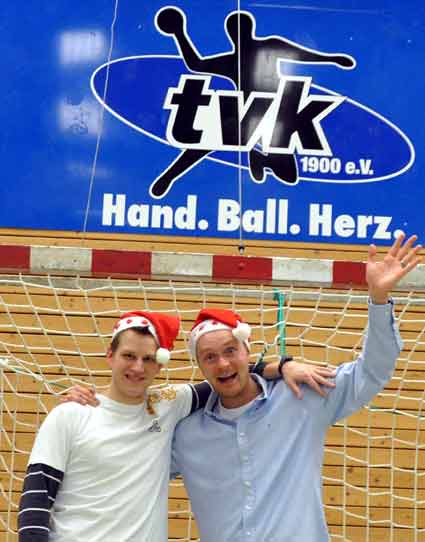 wünscht die gesamte Regionalliga-Mannschaft des TV Korschenbroich, hier durch Simon Breuer (lks.) und Marcel Leclaire vertreten.