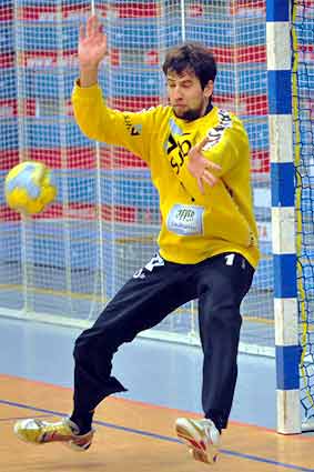 Am 19. Spieltag der Regionalliga West hat der TV Korschenbroichseinen 19. Saisonsieg gefeiert. Beim Nachbarn TSV Bayer Dormagen II setzte sich der Spitzenreiter am Ende deutlichmit 40:27 (15:15) durch. Neben dem Ex-Dormagener David Breuer, der mit 9 Toren erfolgreichster Werfer war,Christian Rommelfanger (8) und Simon Breuer, der alle seine sieben Treffer nach der Pause erzielte, überzeugte beim TVK besonders Torhüter Roland Mainka (Bild), der erst im vergangenen Sommer vom Werksteam an den Niederrhein gekommen war. Mit 19 Paraden war der 23-Jährige an seiner alten Wirkungsstätte überragender Akteur.