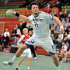 Außer Jörn Ilper (Bronchitis) fehlte bei den Gästen auch Christopher Bath, der sich mit einer Grippe herumschlägt. Dafür mischte aber Marcel Görden (Bild) mit, obwohl er am Dienstagabend bei der Junioren-Nationalmannschaft hatte miterleben müssen, wie sein Freund und Mitspieler Sebastian Faißt vom TSV Dormagen auf dem Spielfeld mit(wie später die Obduktion ergab) einem Herzinfarkt tot zusammenbrach. "Er wollte spielen und hat es auch sehr gut gemacht, ein Riesenkompliment für seine Courage", sagte Coach Khan über seinen Kreisläufer Görden.
