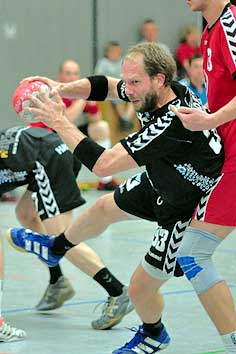 Fast einDutzend geblockter Bayer-Würfe in der Abwehr um Jörn Ilper (Bild) und Dennis Marquardt, die daraus resultierenden Tempogegenstöße konsequent durchgezogen und im übrigen ein Angriffsspiel, dass – von den zudem eminent torgefährlichen Simon und David Breuer angekurbelt – die Uerdingen einige Male geradezu schwindlig hinterließ – der TVK demonstrierte eindrucksvoll seine Extraklasse. Nach dem furiosen Start ließ beim Spitzenreiter Konzentration undBiss ein wenig nach – bis zur Pause konnten die Gastgeber ein wenig herankommen. Auch nach dem Seitenwechselkam Uerdingen nieüber die Rolle eines Trainingspartners hinaus. Bis zur 38. Minute stellten die Gäste denvorherigen Zehn-Treffer-Abstand wieder her, der Rest war lediglich ein – allerdings überaus sehenswertes – Schaulaufen des Meisters.