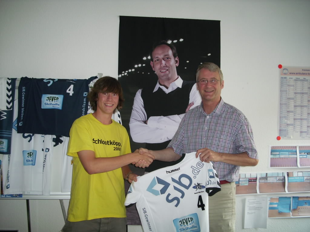 In der TVK-Geschäftsstellein der Hindenburgstraße erhielt Jonas ein Trikot der Ersten, überreicht durch Geschäftsführer Dr. Peter Irmen. Wie von Jonas gewünscht mit der Nummer 4 in Größe L und selbstverständlich mit allen Sponsoren-Logos. Im Gesprächstellte sich heraus, dass das Trikot künftig von einem TVK-Handballer getragen wird – denn Jonas ist in der A-Jugend und in der 4. Herren aktiv. "Mit meinen Mitspielern gehe ich regelmäßig zu den Spielen der Ersten", erzählt der (Gesamt-) Schüler, der früher auch noch Mitglied im Tennisverein war. Eine echte Sportskanone also, zumal er noch vor seinem Handballtraining schon mal zwei Stunden auf dem Rennrad verbringt. Wie es sich für einen "echten" Korschenbroicher gehört,istJonas nicht nur sportbegeistert, sondern auch im Schützenzug aktiv. Die "Schlootköpp"gibt es seit zwei Jahren und – da schließt sich der Kreis – besteht hauptsächlich aus Handballern. "Fast jeden Tag" besucht Jonas die Internetseite www.hand-ball-herz.de."Ich finde die Seite super. Andere Vereine sind online nicht so gut aufgstellt wie der TVK. Besonders gerne schaue ich mir die Videos an, wie z.B. zuletzt das Flensburg-Spiel". Im ersten Saisonspiel gegen TuSEM Essen am 5.9. wird Jonas mit seinen Freunden dann wie gewohnt im Block C der Waldsporthalle für Stimmung sorgen. "Ein, zwei Bierchen" werden dann auch getrunken. Alles wie immer also? Nicht ganz, dennnatürlich wird Jonasbeim Bundesliga-Auftakt sein neues TVK-Trikot tragen. Der TVK bedankt sich recht herzlich sich für alle Zuschriften dieses Gewinnspiels! |