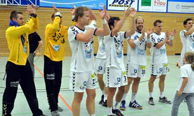 Danke an FansZudem bangt Trainer Khalid Khan um seinen rechten Rückraum. David Breuer, der mit seinen 14 Treffern gegen Essen gleich wieder an die Spitze der Torjägerliste des Unterhauses stürmte, hat sich eine Zerrung zugezogen. Der 27-Jährige wird zwar auf jeden Fall die weite Fahrt nach Schwaben mit antreten, sein Einsatz wird sich aber erst kurzfristig entscheiden.