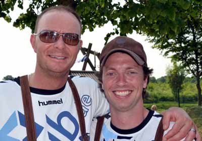 Nach der Rückkehr mitten in der Nacht zum Sonntag steht für die Korschenbroicher am Sonntag noch ein – auf jeden Fall erfreulicher – Termin bei einem der TVK-Sponsoren an. In der Skihalle Neuß steigt nach dem Beginn des Oktoberfests am Samstag am Sonntagmorgen der Almabtrieb, wo sich die Spieler, sowie auf dem Bild Marcel Leclaire und Mathias Deppisch,in zünftigem Lederhosen-Outfit sicher amüsieren werden.