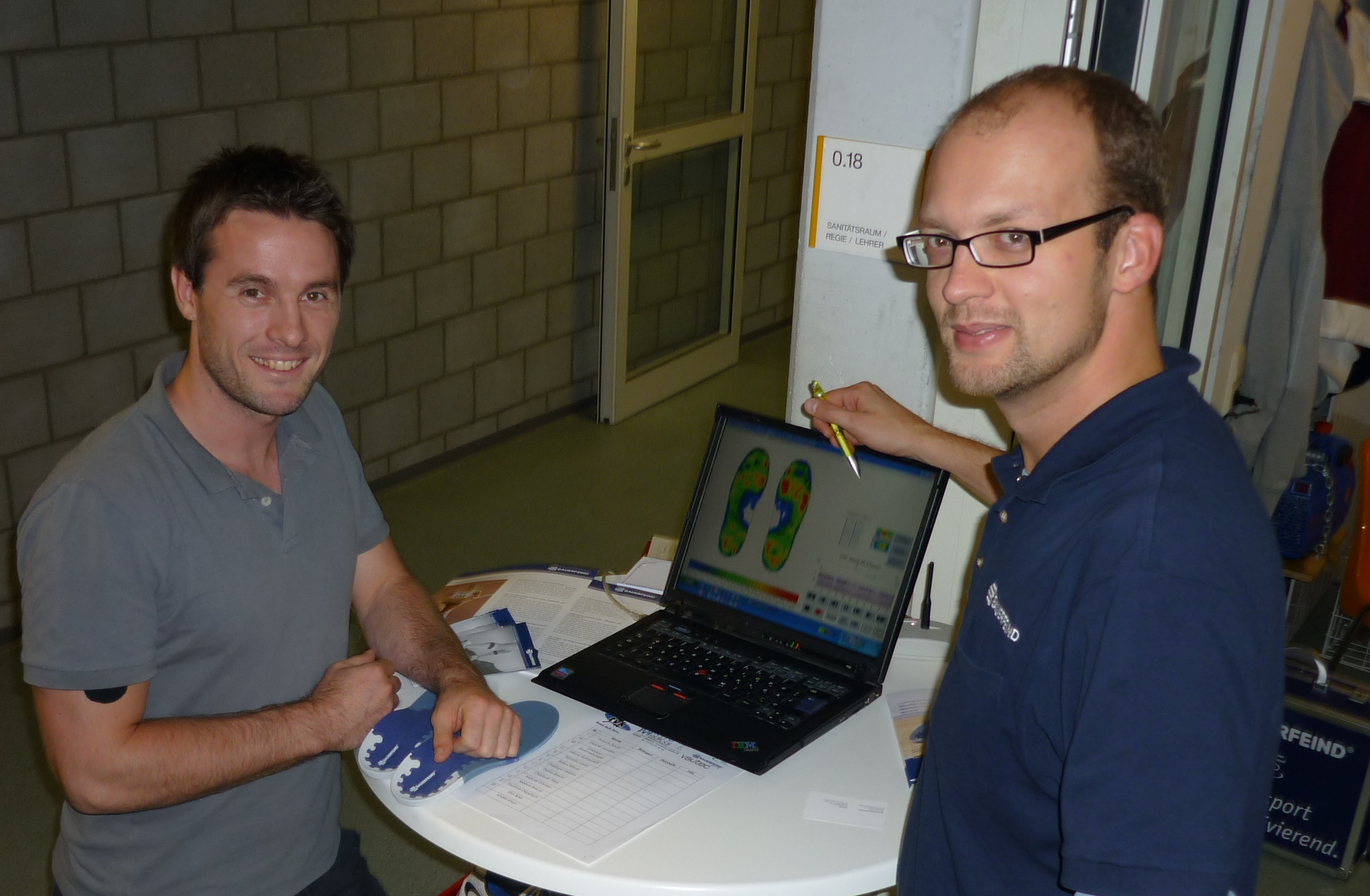 Das Team um Medizinprodukteberater Jörg Mangstl war mit professionellem Equipment angereist, um die Füße der Bundesliga-Handballer zu vermessen und eine Belastungsanalyse durchzuführen.