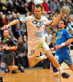 Noch vor Mittelmann Simon, der siebenmal traf, war erneut David Breuer (Bild links), der sechs seiner 14 Treffer per Siebenmeter markierte, erfolgreichster TVK-Werfer. Zum 24:21 in der 40. MInute erzielte der TVK-Kapitän bereits sein 100. Saisontor. Ein Sonderlob des Trainers verdiente sich auch Torhüter Marcel Leclaire. "Das war eine starke Vorstellung, genau so, wie wir sie als Rückhalt brauchen", sagte Khan über seine Nummer 16.