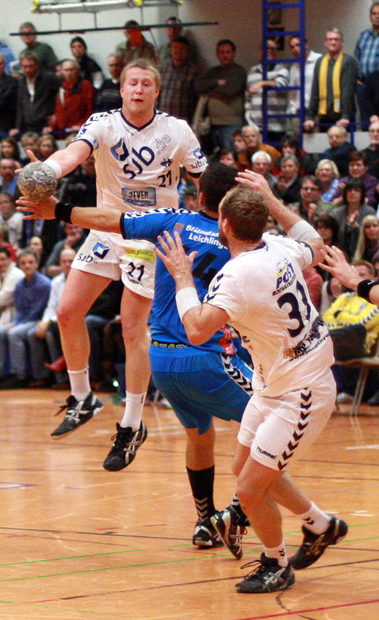Spielszene LeichlingenBereits am Mittwoch steht das nächste Auswärtsspiel in Bietigheim an. Und am kommenden Samstag (19.30 Uhr, Waldsporthalle) erwartet man den ehemaligen Erstligisten ausEisenach – ganz Korschenbroich freut sich schon jetzt auf dasnächste Heimspiel der TVK-Jungs!