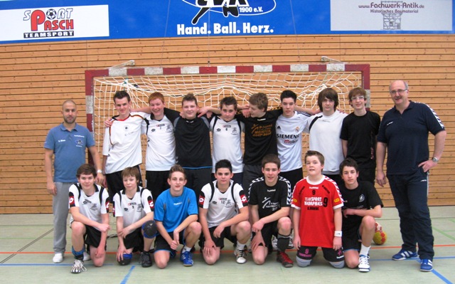 stehend v. links: Referent Khalid Khan, Jan Netzer (TV Korschenbroich), Jan Frantzen (Rheydter SV), Julian Kukulies (HSG Rheydt/Geistenbeck), Max Kuhlen (Rheydter SV), Lukas Nachtigall (ATV Biesel), Vincent Thie (VfL Borussia MG), Arndt Collong (ATV Biesel), Frederik Gutsche (Rheydter SV), Trainer Klaus Weyerbrock; knieend v.links:Max Schneiders (Rheydter SV),Nils König (Rheydter SV), Daniel Kazirod (Rheydter SV), Giuliano Russo (Rheydter SV), Daniel Kox (ATV Biesel), Roland Busch (SG Wickrath-Beckrath), Nicolas de la Vega (Rheydter SV), es fehlt Falko Hastenrath (VfL Borussia MG)