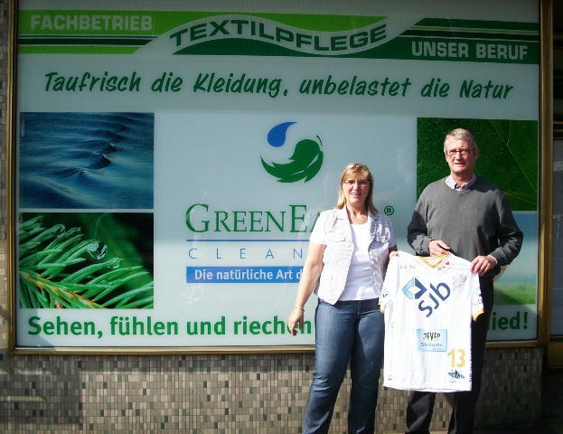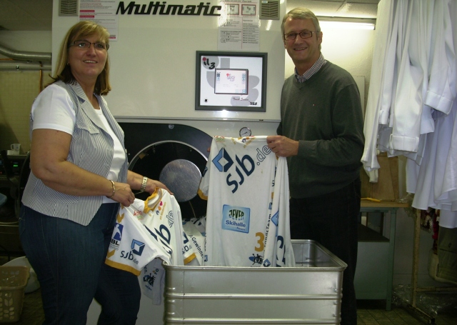 Auch Martina Golombek freut sich sehr über die Partnerschaft mit dem TVK. „Der TVK ist auch hier in meinem Geschäft oft Gesprächsthema. Einige sind sogar ganz neidisch, dass ich die Original-Trikots so oft in den Händen halte“, lacht die sympathische Inhaberin der 1a Reinigung.