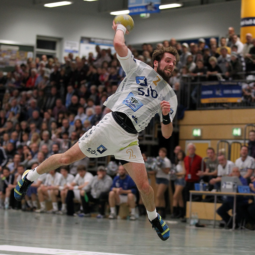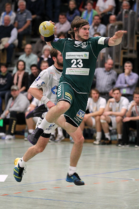 Fuchs LeipzigWährend nach Spielende vor allem die tragische Nachricht beherrschendes Thema in der ausverkauften Waldsporthalle war, erlebten die 699 Zuschauer zuvor ein Handballspiel, an dessen Ende lange Zeit ein doppelter Punktgewinn für die Hausherren zu stehen schien. Hatten zu Beginn noch die Gäste aus Sachsen leicht die Nase vorn und sich beim 3:6 (10.) und 5:8 (13.) mit drei Toren abgesetzt, sorgte eine taktische Umstellung dafür, dass die Leipziger zwischen der 14. und 30. Spielminute nur zu einem einzigen Torerfolg kamen. Der auch offensiv starke Mathias Fuchs bekam von seinem Coach Jörn Ilper den Sonderauftrag, Leipzigs Philipp Seitle in Manndeckung zu nehmen. Das 1,80m große Kraftpaket hatte bis zu diesem Zeitpunkt schon vier seiner insgesamt sechs Treffer erzielt und auf der Spielmacherposition klug die Fäden gezogen. Weil Seitles Kreise durch Fuchs aber effektiv gestört wurden, nutzte Simon Breuer in der 19. Minute zunächst die Gelegenheit zum Ausgleich (8:8) bevor Mathias Fuchs zwei Minuten später sein Team mit 10:9 in Führung brachte.