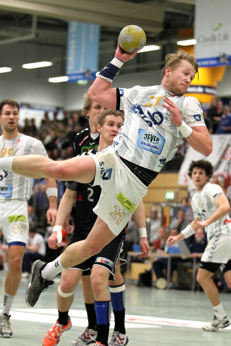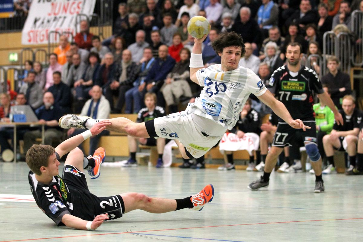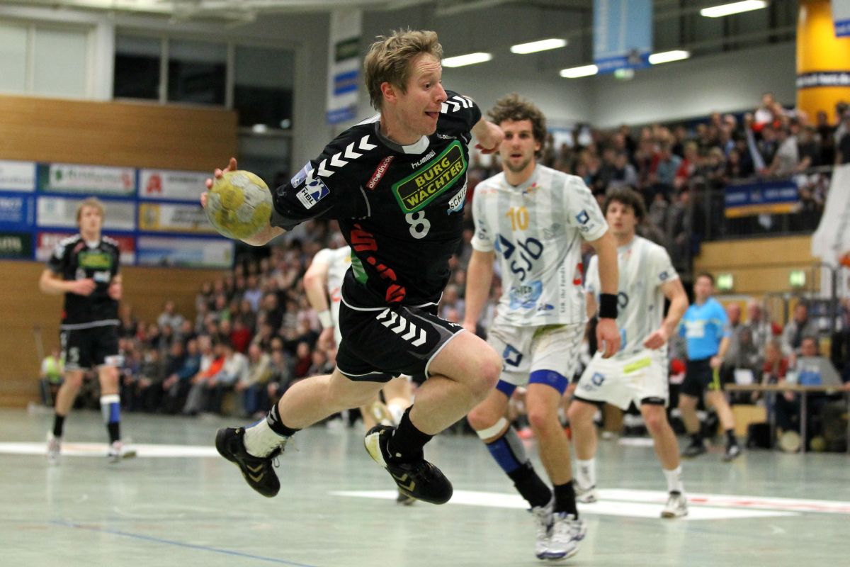Hegemann DüsseldorfAuf freundliche Einladung der Korschenbroicher hin witterte die beinahe schon geschlagene HSG noch einmal Morgenluft und holte Tor um Tor auf. Zweimal gelang dem ehemaligen Europapokalsieger um den Ex-Nationalspieler Hegemann der Anschlusstreffer. Doch weder beim 27:26 (54.) durch den Ex-BHC'ler Quade, noch beim 29:28 vierzig Sekunden vor dem Schlusspfiff durch Hegemann selber fiel der wankende TVK. Stattdessen bewies Kapitän Simon Breuer einmal mehr Nervenstärke, spazierte dreißig Sekunden vor dem Schlusspfiff in unnachahmlicher Manier durch die Düsseldorfer Abwehr und netzte zum 30:28 ein. Dass die beiden letzten Gäste-Versuche im Korschenbroicher Block hängen blieben und Keeper Sven Bartmann einen in der Schlusssekunde verhängten Siebenmeter von Ernir Arnarson parierte, ging im allgemeinen Jubel fast unter.
