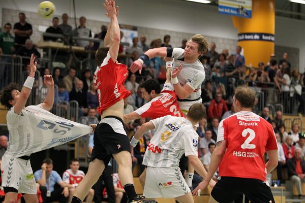 Aber der TVK bewies erneut Moral und glich sechs Minuten vor dem Ende aus (25:25), die Weichen für eine packende Schlussphase waren gestellt. Nach dem letzten Nordhorner Treffer durch ihren besten Akteur Struck zum 27:28 blieben dem TVK noch 16 Sekunden, um zu einem letzten Abschluss zu kommen. Trainer Christian Voß ließ nichts unversucht und beorderte Markus Breuer als siebten Feldspieler aufs Parkett. Sekunden vor dem Ende war es schließlich Christoph Piske, erst knapp zehn Minuten vorher eingewechselt und gleich dreifach erfolgreich, der sich ein Herz fasste und den Ball aufs Nordhorner Gehäuse brachte. Im Gegensatz zu seinen vorherigen Versuchen war ihm das Wurfglück dieses Mal jedoch nicht hold und Björn Buhrmester rettete seinem Team mit seiner 16. und letzten Parade den Sieg.