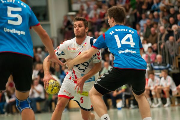 Sicherlich war die Spielleitung von Menne/Thiele nicht ursächlich für die erste Korschenbroicher Saisonniederlage – von der Hand zu weisen war ein nicht geringer Einfluss auf den Verlauf der engen Partie aber auch nicht. In der hatten sich der TVK und Uerdingen über weite Strecken einen schnellen Schlagabtausch geliefert. Zwar konnten sich die Hausherren im ersten Durchgang auf drei Treffer absetzen (7:4, 12.), wenige Minuten später hatte der Gast aus Krefeld aber schon wieder für den Ausgleich gesorgt (9:9, 19.). Auch im zweiten Durchgang waren es zunächst die Korschenbroicher, die vorlegen konnten (19:16, 35.), abermals hatte die Führung jedoch nicht lange Bestand.