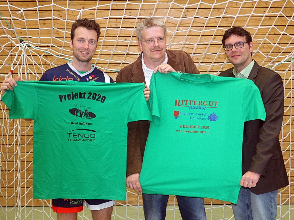 Mit dem „Rittergut Birkhof“ konnte bereits ein Unterstützer des „Projekt 2020“ gefunden werden. Nahezu die gesamte Jugendabteilung war mit einem „Rittergut Birkhof“-Shirt beim Spiel gegen ART Düsseldorf anwesend, „bei freiem Eintritt“, wie Dr. Irmen erläutert. Am Sonntag gingen rund 150 TVK-Kids beim City-Lauf mit den Spielern der 1. Herren Hand in Hand an den Start – ein durchaus symbolischer Akt.