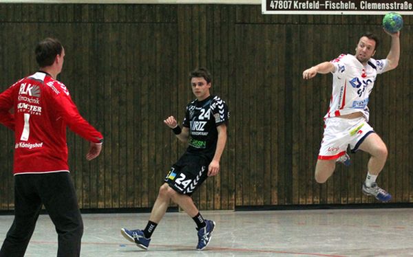 Almantas Savonis konnte die letzten Tage vor dem Duell bei der DJK Adler Königshof aufgrund einer Grippe nicht trainieren und nahm am Samstagabend auf der Bank Platz, Philipp Ruch bekam noch einmal die Chance sich für einen neuen Klub zu empfehlen. Schnell war den 300 Zuschauern in der Sporthalle Königshof klar, dass der TV Korschenbroich sein Vorhaben, beide Punkte aus Krefeld mitzunehmen, von Anfang an wahr machte. Michel Mantsch verwandelte in der 2. Minute einen Strafwurf zum 1:0 für die Gäste, danach zog der TVK bis auf 6:0 davon. Philipp Ruch, der eine gute Partie zeigte, nagelte sein Gehäuse zu, vorne nutzte man die Chancen effektiv und ließ der DJK keine Chance.