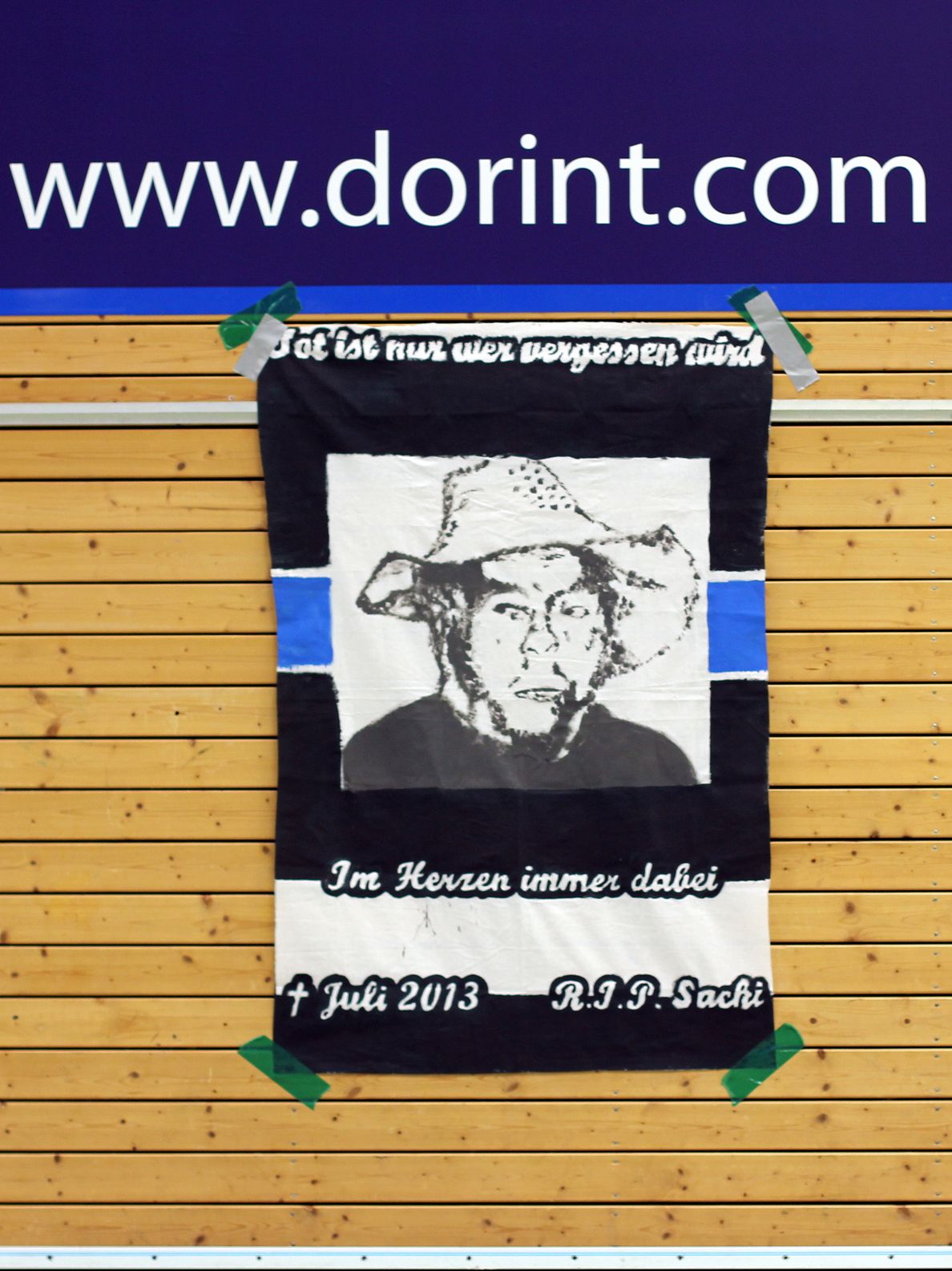 Die Partie wurde nur kurz vom Schiedsrichtergespann Andre Kraus und Ole Remmers angepfiffen. Anlass für die frühzeitige Unterbrechung war eine Schweigeminute in Gedenken an Heinz "Sacki" Hilgers, der in der Nacht vom 21. auf den 22. Juli 2013 im Alter von 77 Jahren verstarb. "Sacki" war ein Korschenbroicher Original, der Vollzeittrommler des TVK und immer fröhlich und hilfsbereit. Zur Erinnerung an Heinz "Sacki" Hilgers wurde auch ein Plakat in der Halle aufgehängt.