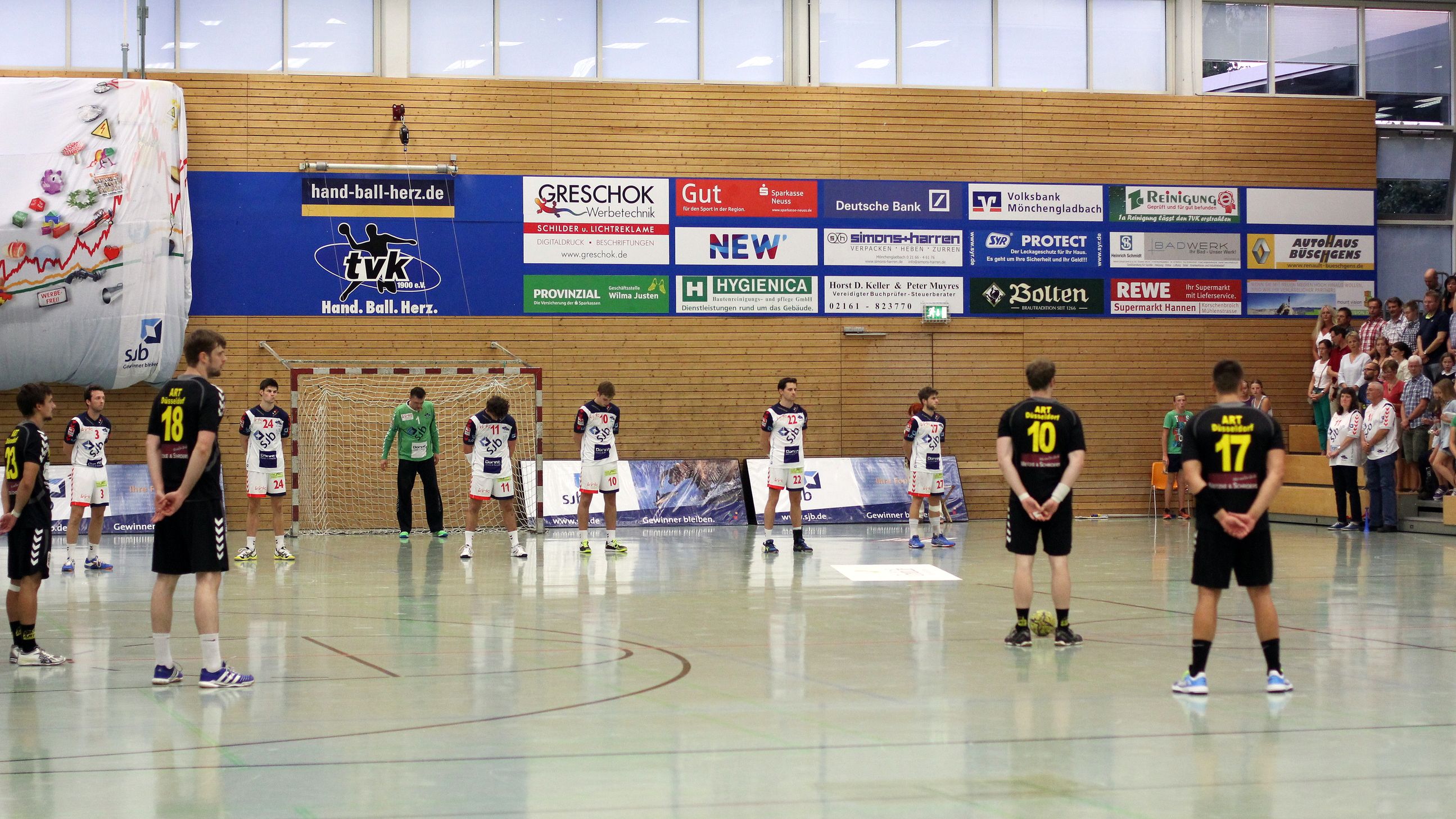 Der dänische Coach des TVK hatte seine Spieler und die Zuschauer gewarnt, dass die Partie gegen den ART Düsseldorf anders als noch beim 36:19-Erfolg in der Vorbereitung auftreten würde. Und der Coach der Landeshauptstädter, Jens Sieberger, setzte wie schon beim Überraschungsauftaktsieg gegen die HSG Varel-Friesland auf eine starke Deckung. So konnten die Gäste gleich zu Beginn der Partie mit 1:0 und 2:1 durch Carl Moritz Wagner und Henrik Schiffmann in Führung gehen. Christoph Gelbke und Tom Wolf sorgten für die erste Führung der Gastgeber unter dem Applaus der rund 600 Zuschauer. Der TVK konnte sich mit 5:3 (8. Minute) und 7:5 (11. Minute) absetzen. Allerdings blieb der Gast aus Düsseldorf dran, rührte in der Deckung Beton an und der Gastgeber fand keine Mittel gegen die Abwehr der Gäste. So blieb der TVK sechs Minuten lang ohne Treffer, der ART drehte die Begegnung durch Treffer von Henrik Schiffmann, Carl Moritz Wagner und Markus Neukirchen. Das Team von Jens Sieberger führte mit 8:7.