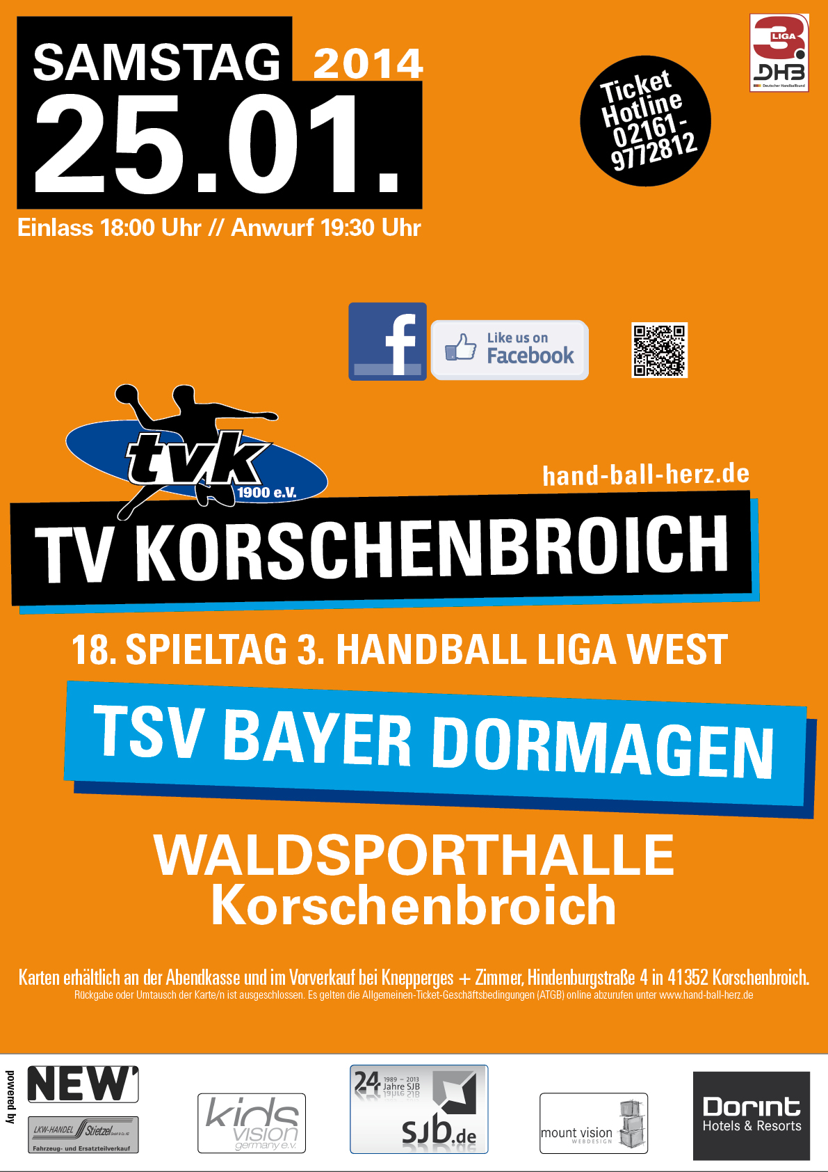 Somit startet der TVK mit seinem Heimdebut gegen den TSV Bayer Dormagen. Doch nicht wie geplant am Freitag den 24.01. sondern einen Tag später am Samstag, den 25.01., Anwurfzeit: 19:30 Uhr. "Wir reagieren auf den aktuellen Spielplan der Fußball-Bundesliga, mit dem Spitzenspiel von Borussia Mönchengladbach gegen den FC Bayern", erläutert Faltin. "Es kommt unserer Begegnung nur entgegen dieses Spiel nicht zeitgleich auszutragen und sicherlich auch allen Sport-, Hand- und Fußballfans, dass wir uns um einen Tag verschieben", so Faltin.