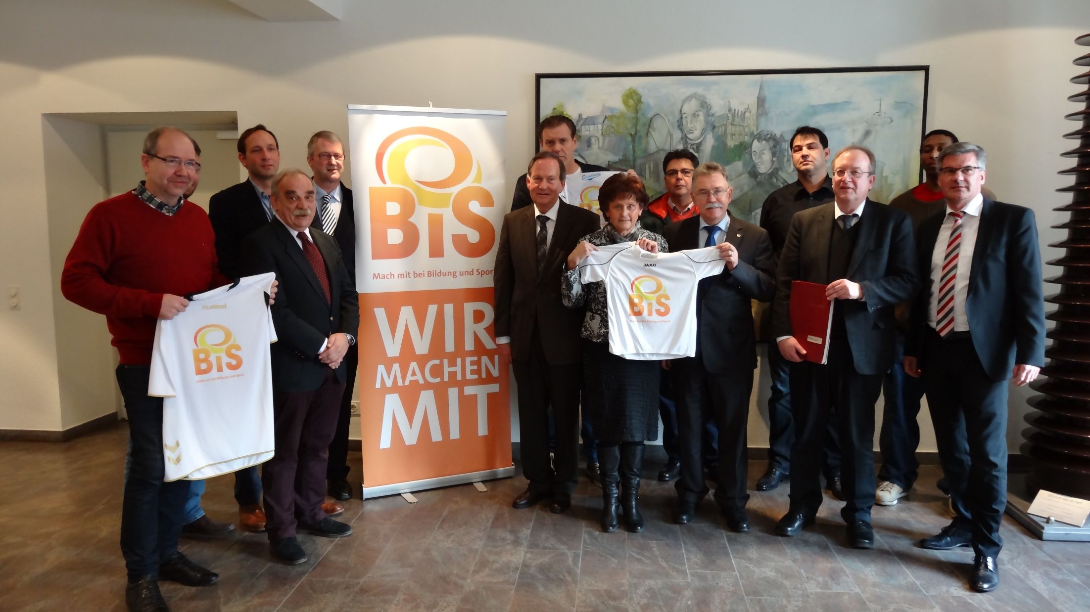 Mit der Präsentation des Logos, gestaltet von Marcus Claessen (PMS) sowie von entsprechenden Trikots, die der Coach der Elephants Hartmut Oehmen entworfen hat, appellierten alle Projektteilnehmer: Mach mit bei Bildung und Sport.