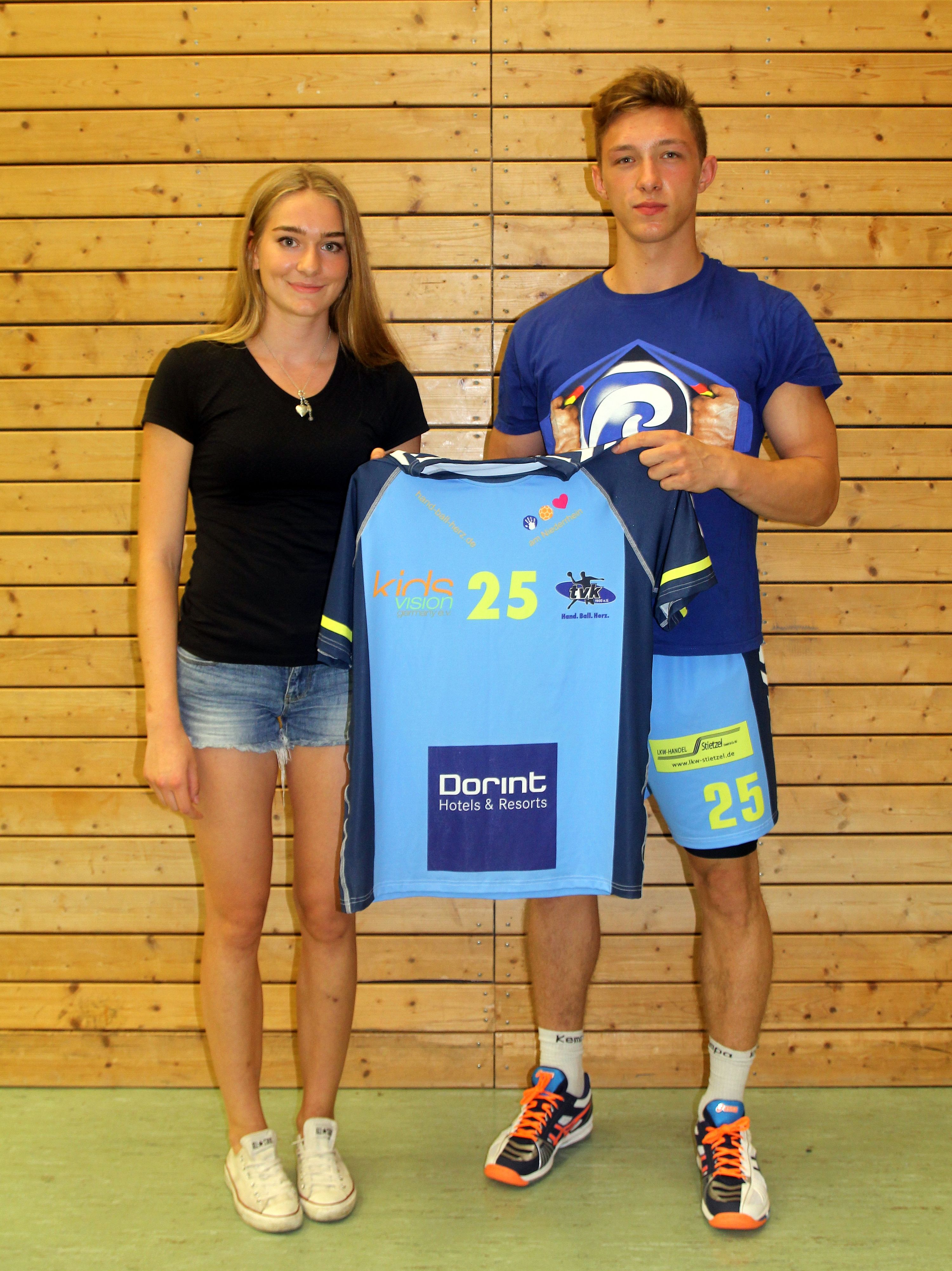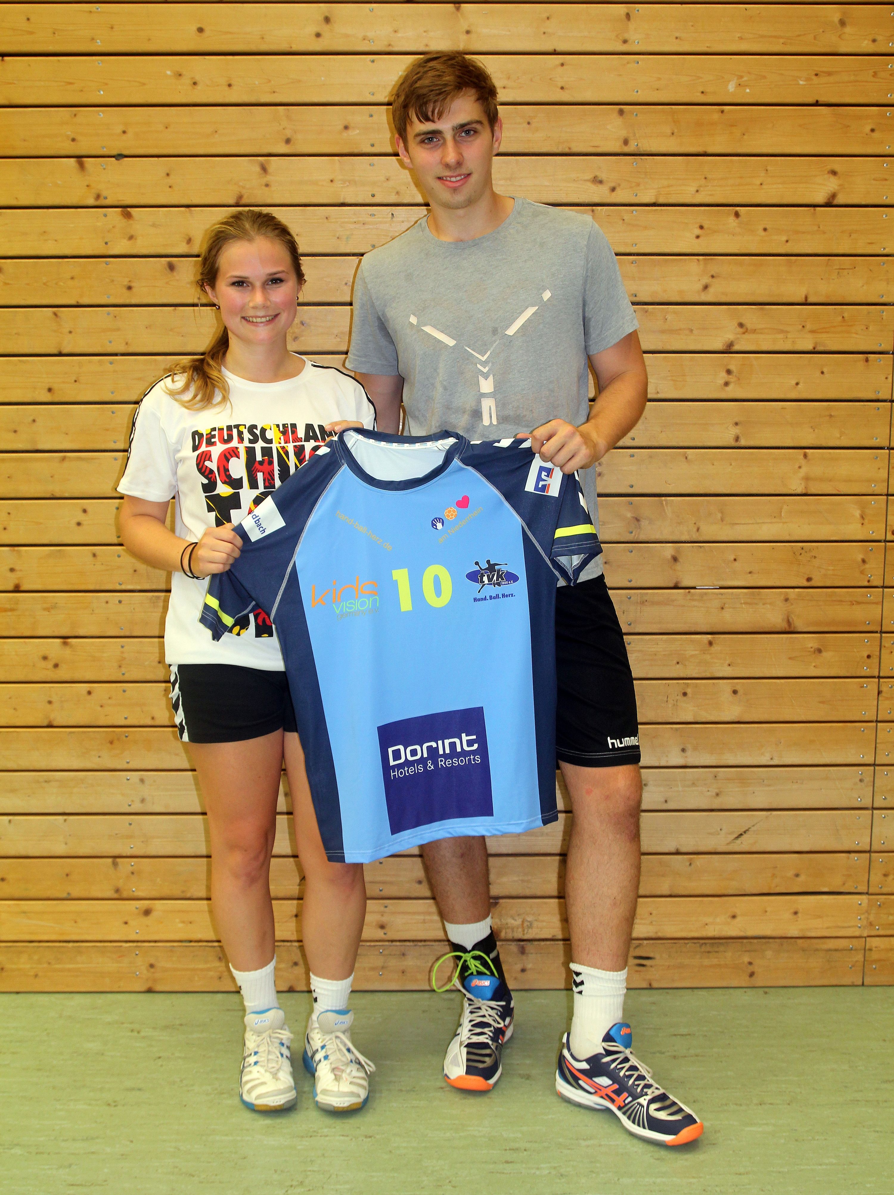 Unter der Woche präsentierten die Drittliga-Spieler des TV Korschenbroich die neuen Auswärtstrikots gemeinsam mit den Spielerinnen der weiblichen A-Jugend der JSG TVK/ART. Dabei ließen sich Laura Wilmes und Tom Wolf, Sophie Huckemann und Neuzugang Justin Müller mit den neuen Feldspielertrikots für die Auswärtsspiele ablichten. Zudem präsentierte Keeperin Melanie Schindowski gemeinsam mit Benedikt Köß, der kurzfristig als Ersatz für den verletzten Paul Keutmann verpflichtet wurde, das neue gelbe Torhütertrikot.