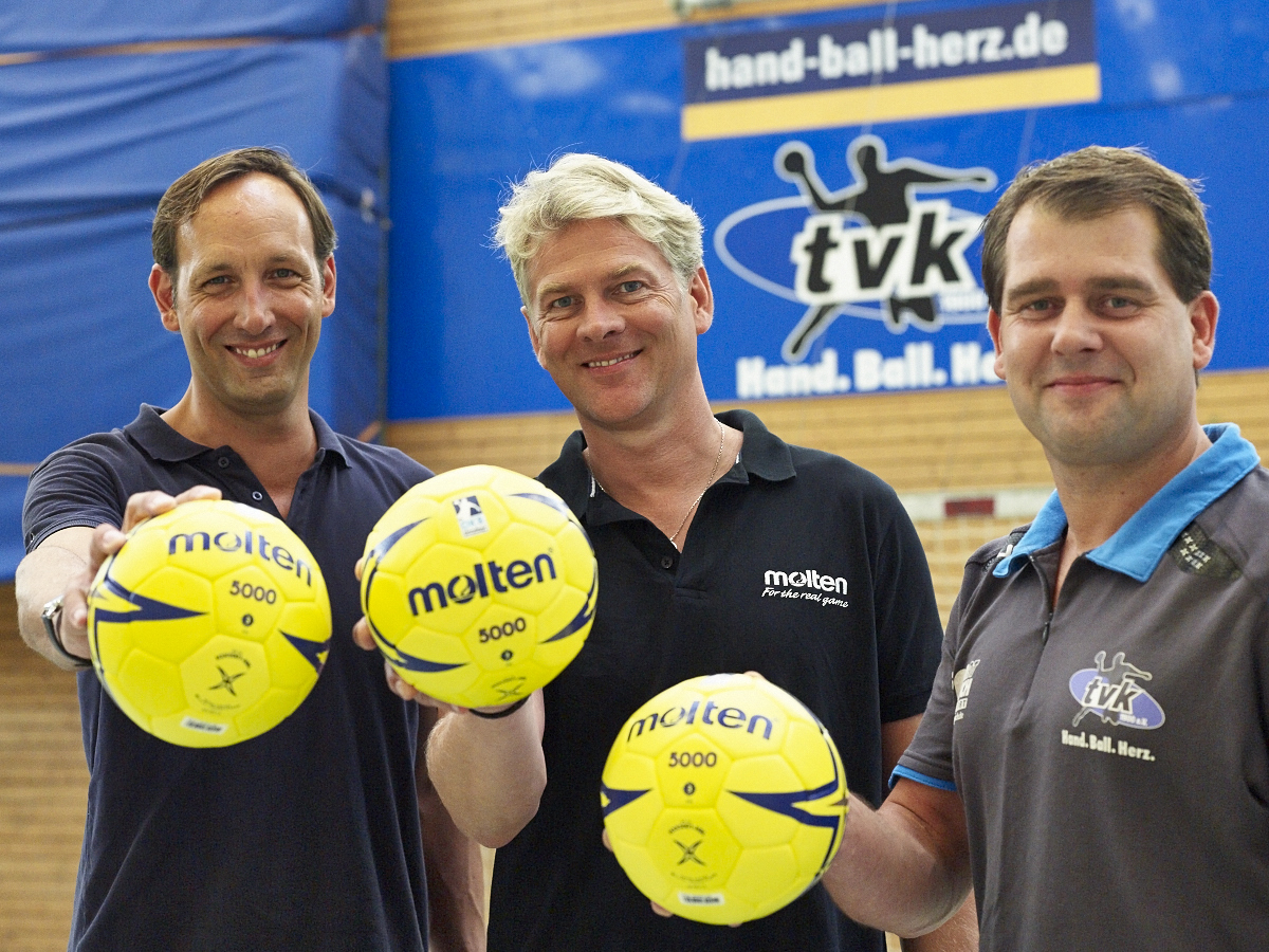 Die erfolgreiche Kooperation zwischen dem Handball-Drittligisten TV Korschenbroich und Molten wird auch in der Saison 2014/2015 fortgesetzt. Darauf einigten sich Kai Faltin, Manager und Sportlicher Leiter des TV Korschenbroich, und Thorsten Pletz, Verkaufsleiter Deutschland der Molten Europe GmbH. Am Dienstag wurden die Handballer des TVK mit dem neuen Handball "H3X5000" ausgestattet.