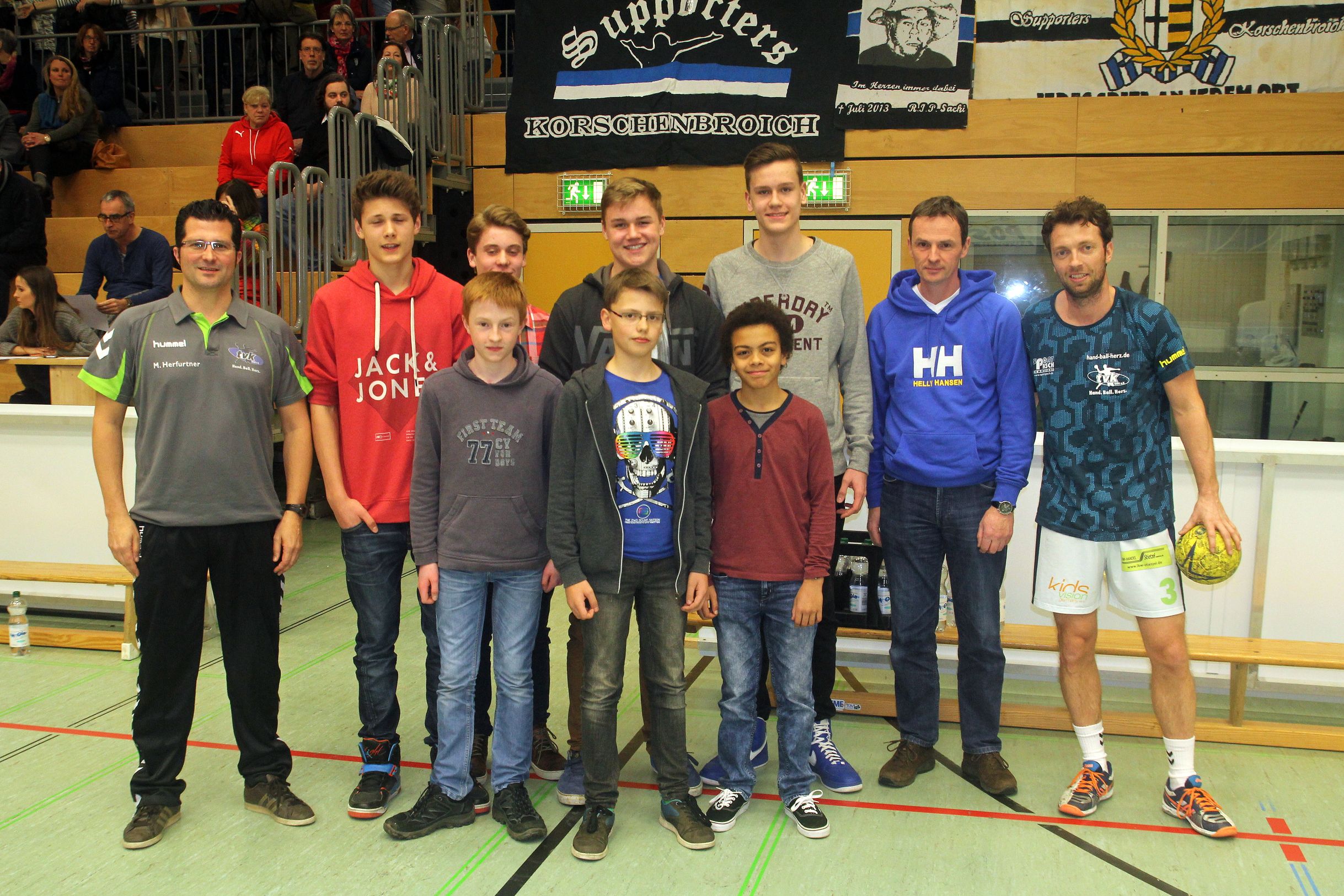 Am Freitagabend stellte der TV Korschenbroich unmittelbar vor dem Heimspiel die ersten sieben Mitglieder des „Club 2020“ vor. Aus der C-Jugend wurden Luca Koll, Kim Schlemmer, Yannick Blass und Valentin Bones sowie aus der B-Jugend Lukas Menze, Max Beyer und Moritz Schirmer ausgewählt. „Das sind die ersten sieben Mitglieder, weiteren Spielern steht die Aufnahme in den „Club 2020“ natürlich offen. Voraussetzung dafür sind Talent und Motivation. Auch die Aufnahme von weiblichen Nachwuchsspielerinnen ist geplant, nachdem wir die Planungen für die JSG TVK/ART für die kommenden beiden Jahre in den letzten Wochen forciert haben.“