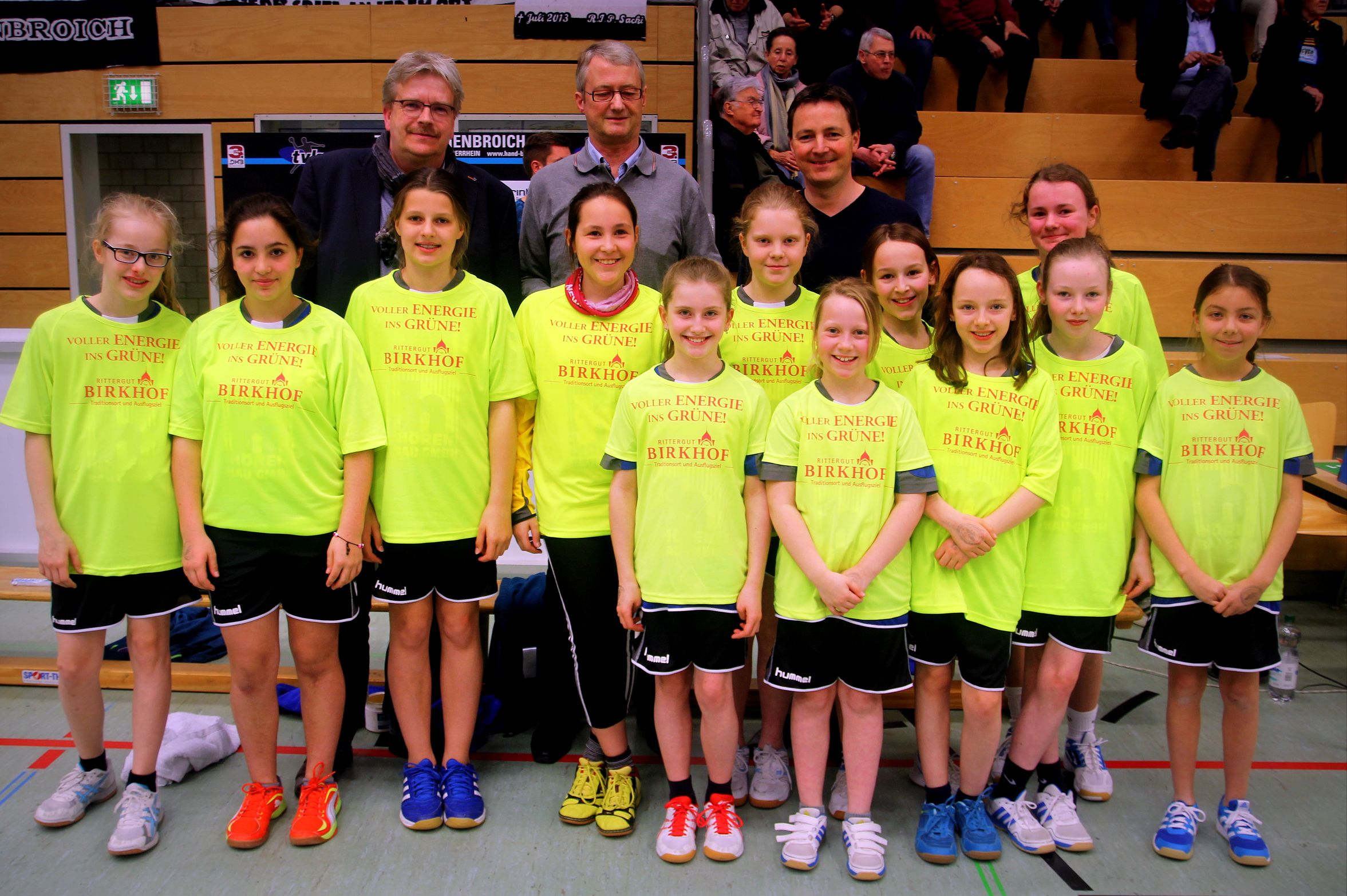 Unterstützt wird der TV Korschenbroich einmal mehr vom Rittergut Birkhof. Uwe Bremeyer übergab die über 220 T-Shirts im Rahmen der Drittligapartie zwischen dem TVK und dem TuS Ferndorf. Auf der Vorderseite sind die knallig gelben Shirts mit dem Slogan „Voller Energie ins Grüne“ bedruckt. Auf der Rückseite steht „Rittergut Birkhof unterstützt das Projekt 2020“ – zudem ist das Logo des TVK zu sehen.