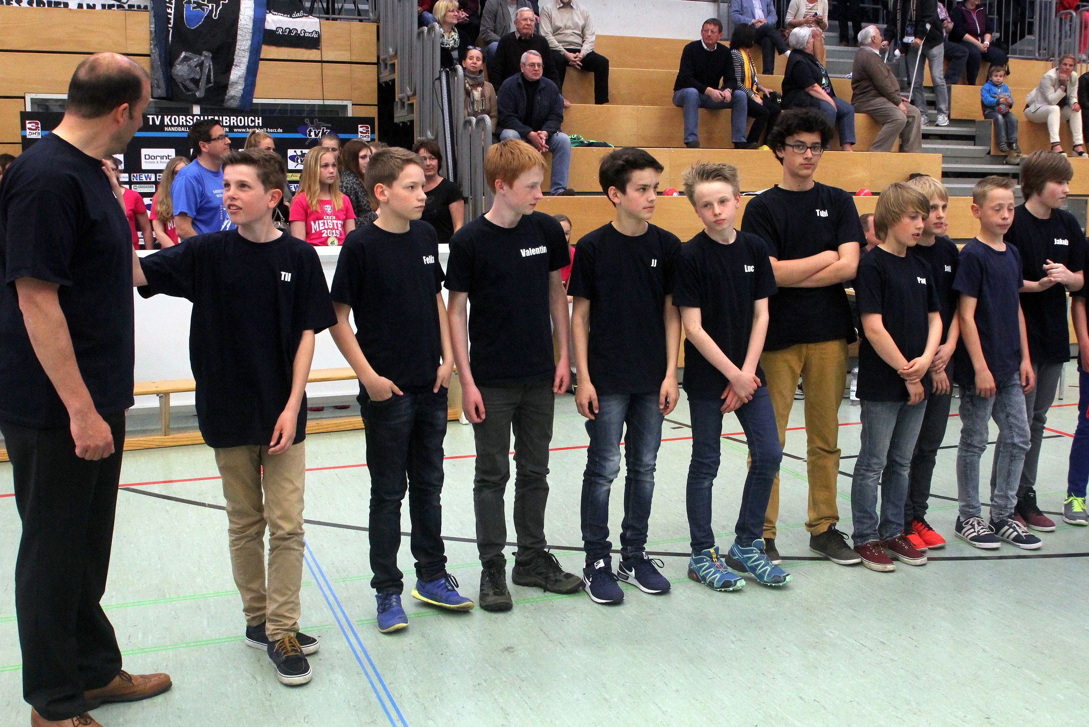 Vor dem Drittligaspiel des TV Korschenbroich gegen den VfL Gladbeck wurden drei Jugendteams – die weibliche B- und D-Jugend sowie die männliche D-Jugend – des TVK durch Rolf Mayer, Vorsitzender des Handballkreises Mönchengladbach, für die erfolgreiche Spielzeit 2014/2015 geehrte. Alle drei Teams sicherten sich die Kreismeisterschaft in ihrer Altersklasse.