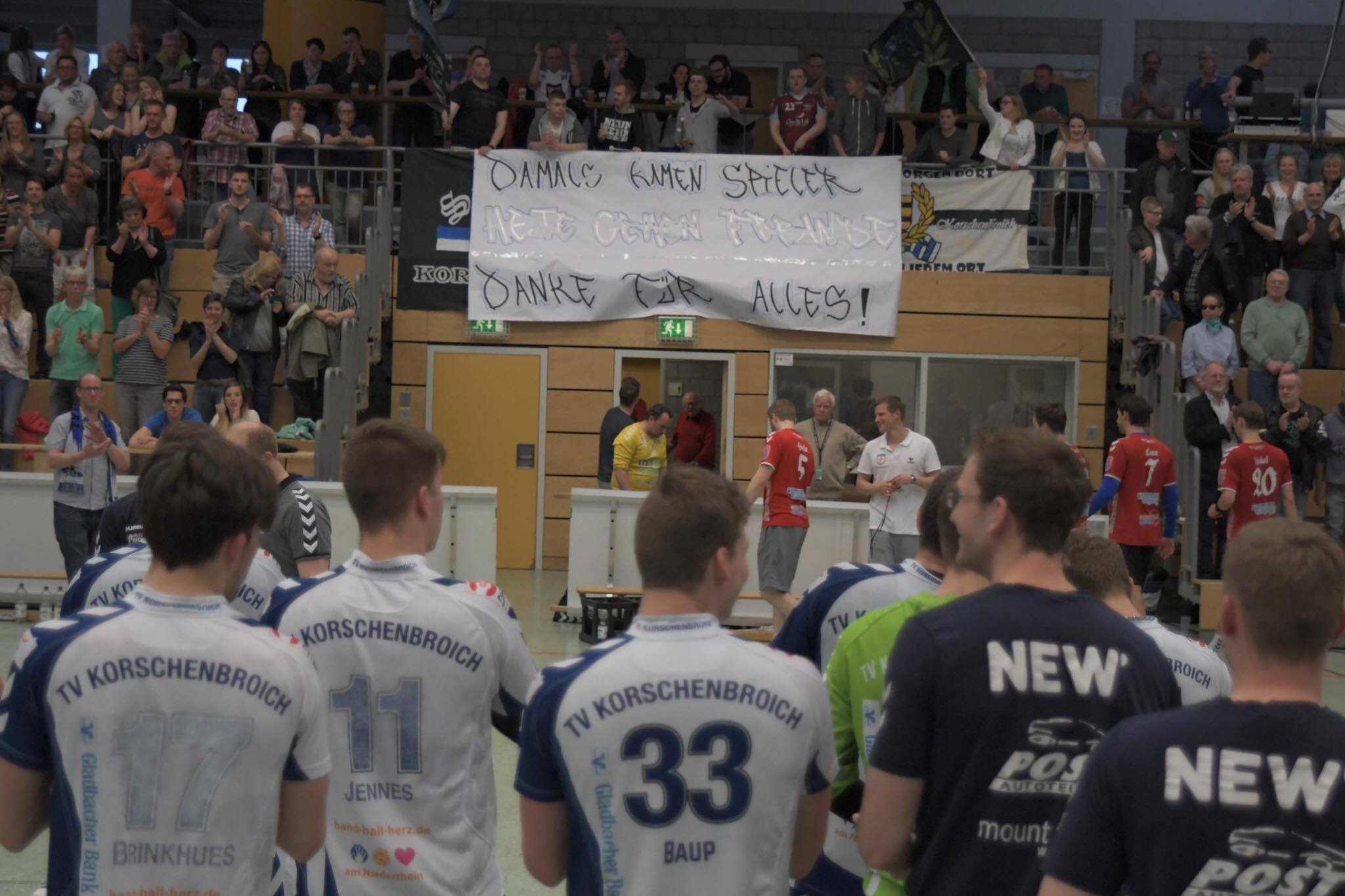 Am Ende war es ein versöhnlicher Abschluss der Saison 2016/2017. Der TV Korschenbroich gewann das letzte Meisterschaftsspiel vor 407 Zuschauern in der heimischen Waldsporthalle gegen die SG Ratingen mit 42:37 (22:19). Max Zimmermann und Henrik Schiffmann avancierten mit jeweils zwölf Treffern zu den erfolgreichsten Torschützen im hand.ball.herz.-Team, bei der SG Ratingen waren Carsten Jakobs und Lars Jäckel jeweils zehnmal erfolgreich.