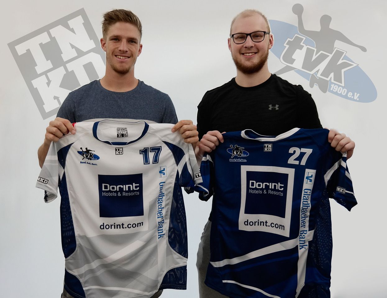 Die neuen Trikots kamen am Montagabend zum ersten Mal beim professionellen Fotoshooting zum Einsatz. Fabian Bleckat, Neuzugang des TV Korschenbroich, hatte die neuen Trikots in Köln bei TANKED Sports abgeholt. Der 18-Jährige bekam die neuen Outfits von Jan Jacob, der bei TANKED Sports für den Verkauf und das Marketing zuständig ist, übergeben.