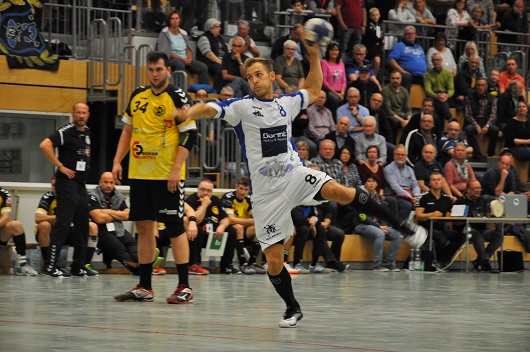 Zu Beginn war es ein zähes Spiel, in dem sich die Mannschaften bis zur Mitte des ersten Durchgangs auf Augenhöhe befanden. Dann konnten die Hausherren einen Zwei-Tore-Vorsprung etablieren. Vor allem auf den sehr stark aufspielenden Sascha Wistuba (11/5) war erneut verlass, der zur Halbzeit fünf der 13 Tore erzielte. Eines davon war das letzte des ersten Durchgangs zum Halbzeitstand von 13:10.