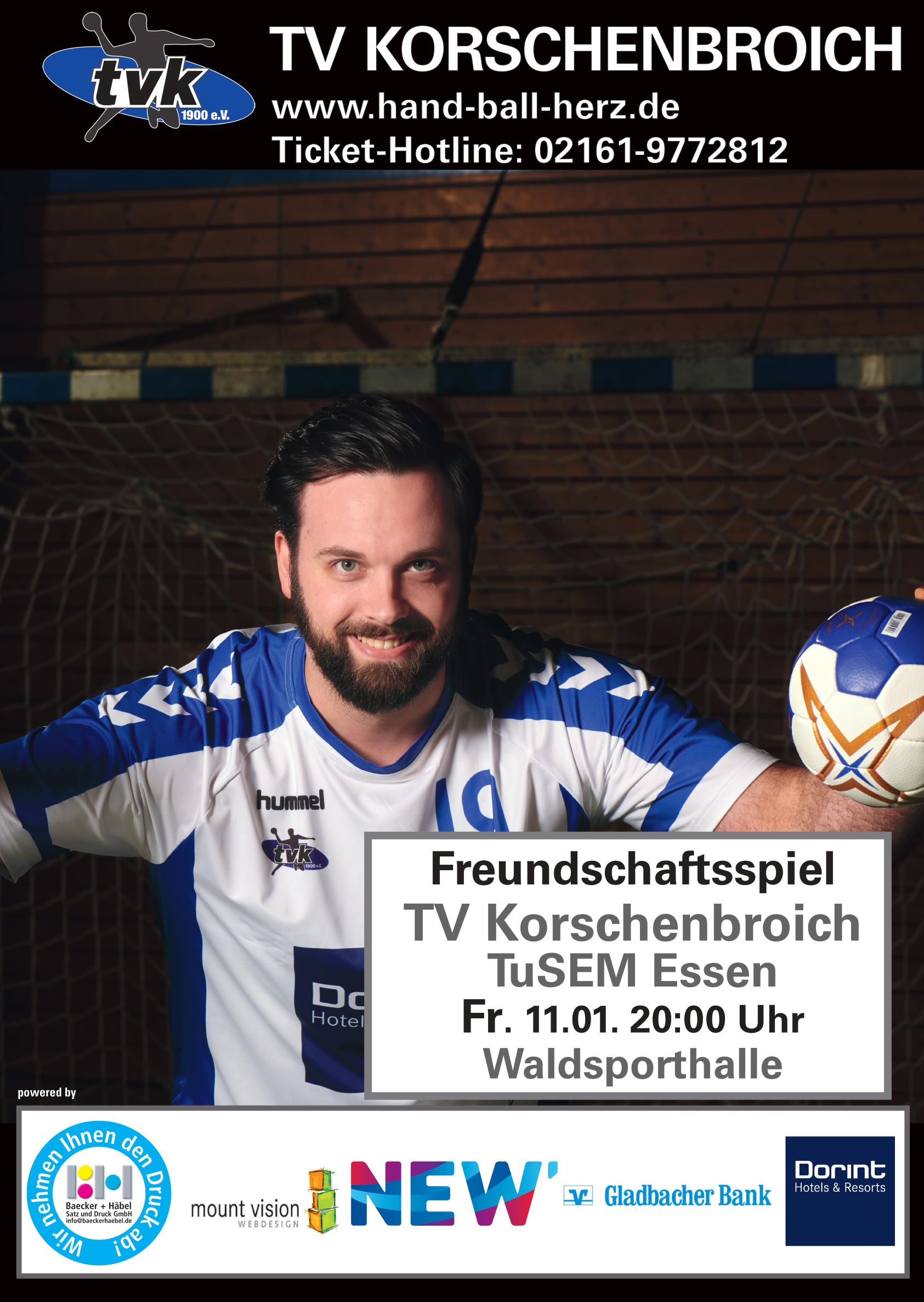 Am 11.01.2019 um 20:00 Uhr empfängt der TV Korschenbroich in eigener Halle den TuSEM Essen.