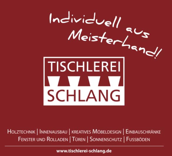 Erneut kann der TVK gute Nachrichten auf der Sponsorenseite verkünden. Mit der Tischlerei Schlang GmbH verlängert ein langjähriger Partner seinen Vertrag um mindestens eine weitere Spielzeit und baut sein bestehendes Engagement sogar noch aus. Neben einer Bande auf der Kopfseite der Waldsporthalle wird das Unternehmen zukünftig mit einer halbseitigen Werbeanzeige in allen Ausgaben des Programmhefts „Einwurf“ präsent sein.