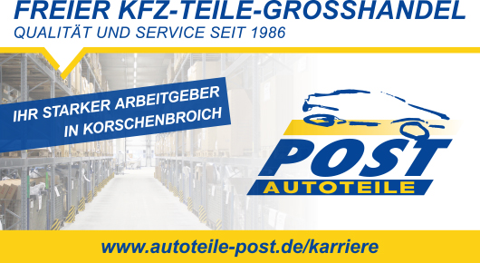 Die Autoteile Post AG bleibt Business-Partner des TVK und baut ihr langjähriges Engagement in der kommenden Saison sogar noch aus. Das Korschenbroicher Familienunternehmen mit inzwischen 250 Mitarbeitern ist spezialisiert im B2B-Vertrieb von Automobilersatzteilen für überwiegend französische und italienische Fabrikate im Absatzgebiet Deutschland, Österreich und den Niederlanden. Seit der Gründung im Jahr 1986 befindet sich das Unternehmen auf stetigem Wachstumskurs und beliefert von seinem inzwischen 17.000 m² großen Lager 15.000 zufriedene Kunden mit einem Sortiment von ca. 50.000 dauerhaft verfügbaren Artikeln. Durch das stetige Wachstum ist die Autoteile Post AG auch immer auf der Suche nach qualifizierten Mitarbeitern.