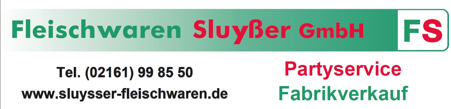 Der Fabrikverkauf der Fleischwaren Sluyßer GmbH hat an allen Donnerstagen und Freitagen ganztägig von 09.00 bis 18.00 Uhr, und an Samstagen von 08.00 bis 13.00 Uhr geöffnet. Sie erreichen das Unternehmen darüber hinaus auch telefonisch unter +49 2161 – 998550 sowie über die neu gestaltete Internetseite unter www.fs-fleischwaren.de