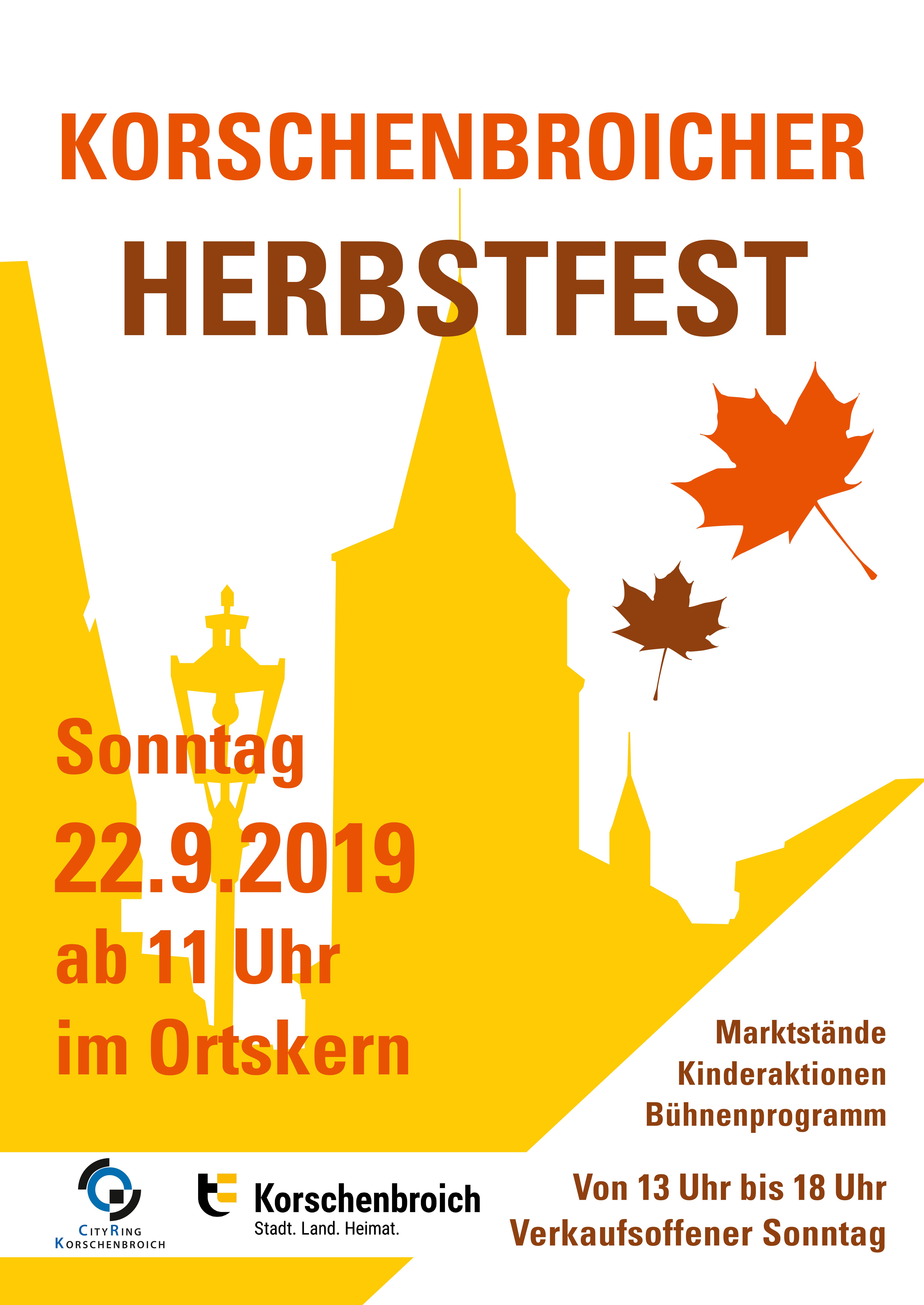Am kommenden Sonntag ab 11.00 Uhr beginnt das jährliche Korschenbroicher Herbstfest. 99 Stände werden auf dem Korschenbroicher Herbstmarkt am 22. September für bunte Vielfalt sorgen. Köstliches und Kreatives, Dekoratives und Informatives wartet auf die Besucher. Um 12.30 Uhr wird der 13. Korschenbroicher Herbstmarkt eröffnet. Auch die Stadt Korschenbroich, das Team vom Bürgerbus und verschiedene Vereine präsentieren sich zwischen Blumen-, Schmuck- und Essens-Ständen und freuen sich darauf, mit den Gästen ins Gespräch zu kommen. Von 13 bis 18 Uhr sind die Geschäfte in der Innenstadt geöffnet und laden dazu ein, Herbsttrends zu entdecken.