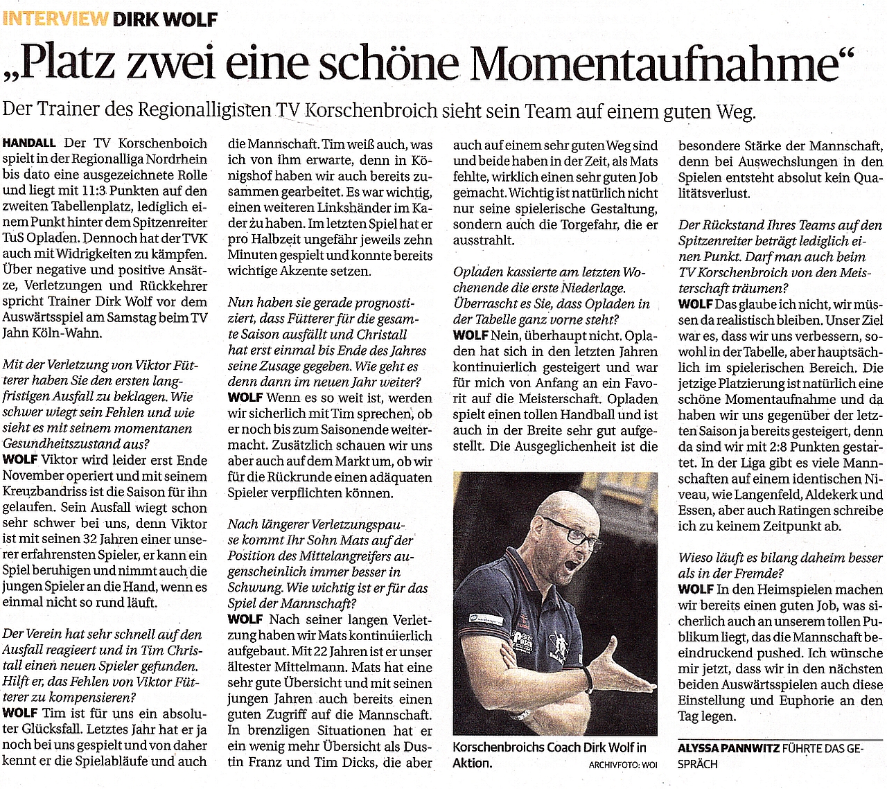 Dirk Wolf stand der Rheinischen Post Mönchengladbach vor dem Spiel beim TV Köln-Wahn Rede und Antwort: