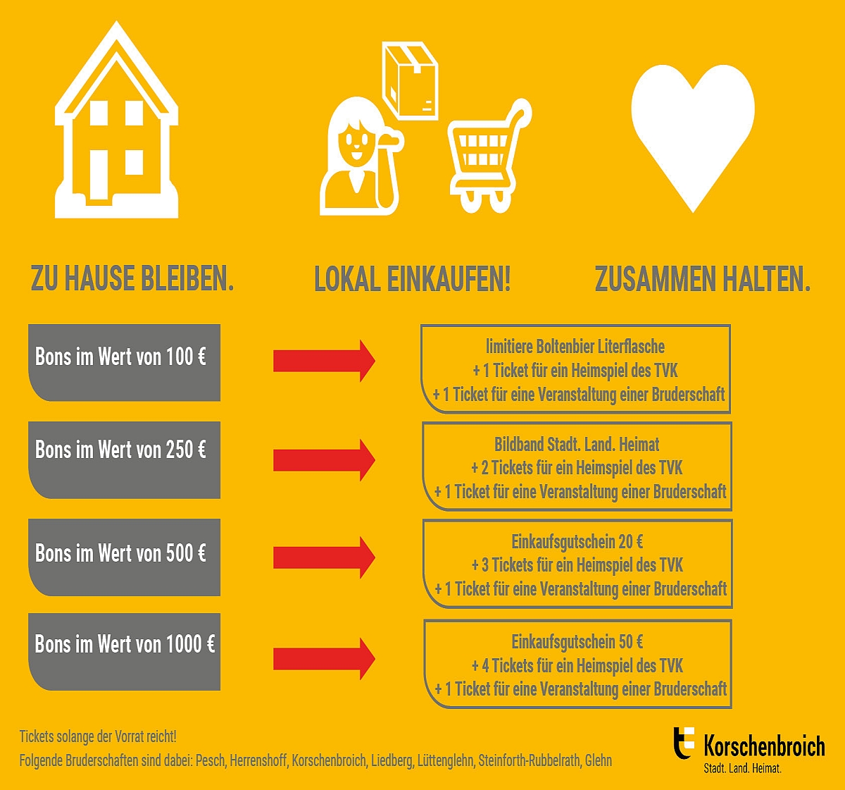 Gerne verweisen wir noch einmal auf das städtsche Prämiensystem der Stadt Korschenbroich zur Unterstützung des lokalen Einzelhandels und der Gastronomie hin. Die Aktion geht in die Verlängerung bis zum 30.06.2020. Weiterhin gilt es Bons und Quittungen (Belegdatum bis 30. Juni 2020) zu sammeln und diese bei der Stadtverwaltung einzureichen.