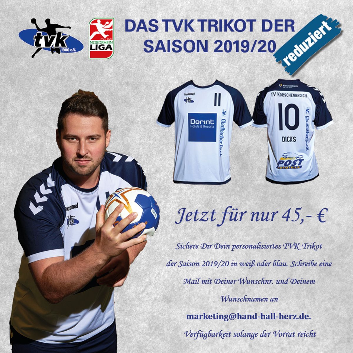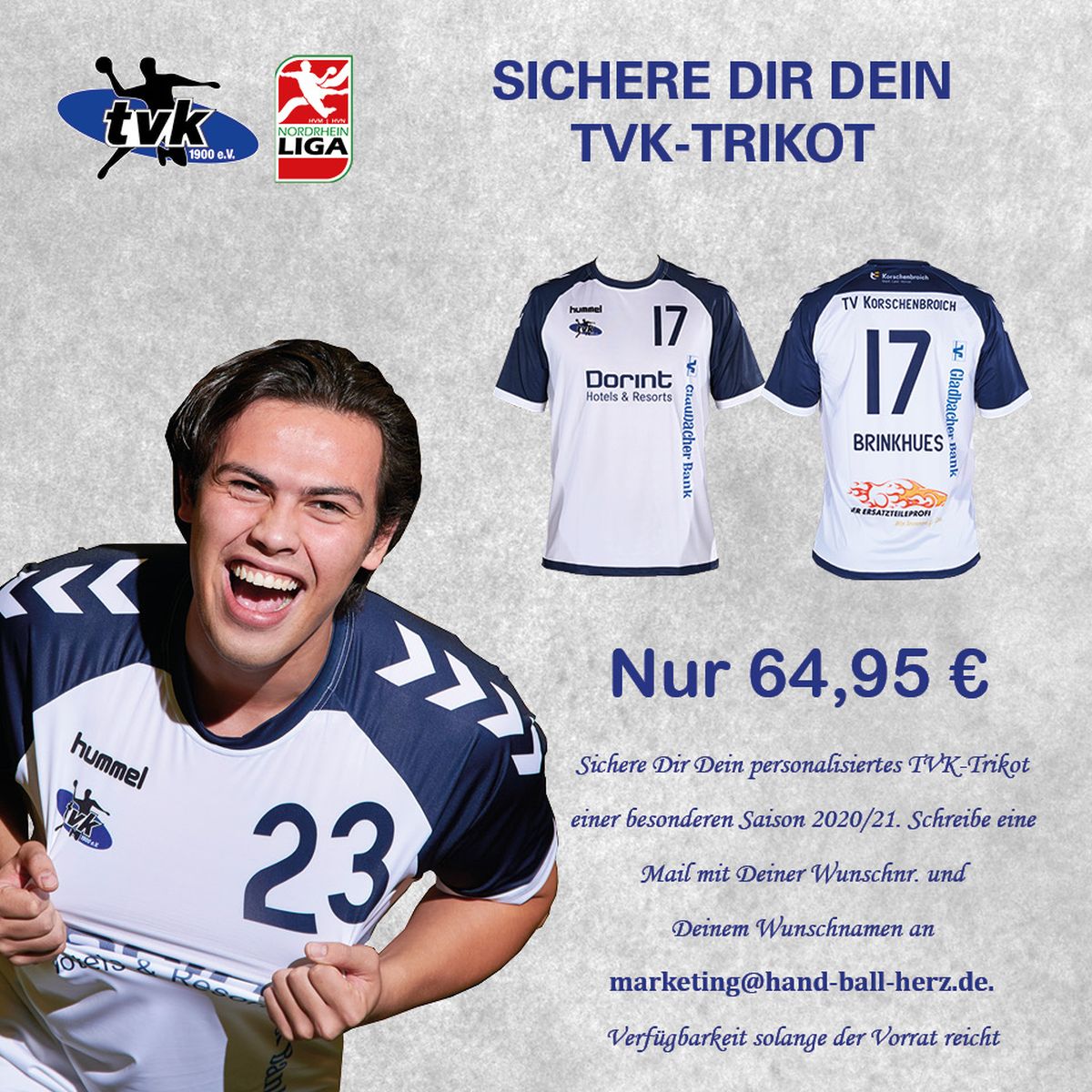 Auch wenn die Saison 2020/21 aktuell unterbrochen ist, möchten wir allen TVK-Freunden die Möglichkeit geben, das neue TVK-Trikot zu erwerben. Wie in den vergangenen Spielzeiten, haben wir ein paar Trikots in verschiedenen Größen vorrätig. Die Trikots können ganz individuell mit Wunschnamen und Wunschnummer beflockt werden. Der Preis beträgt 64,95 € inkl. Wunschname und Wunschnr.