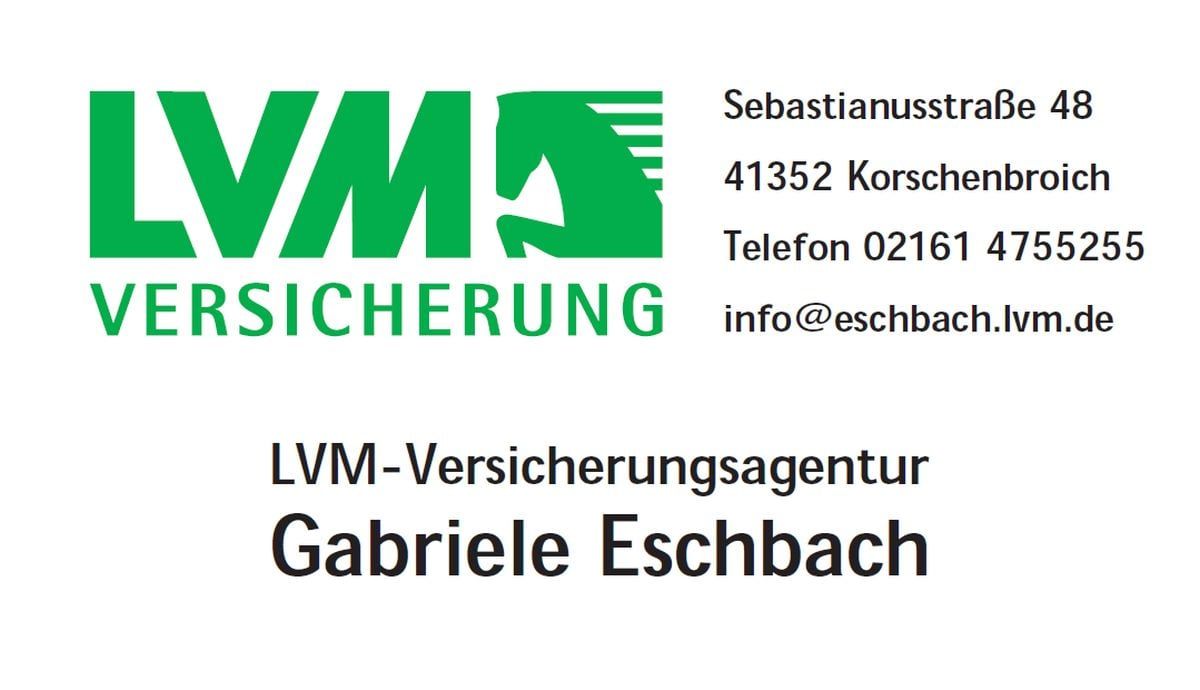 Für alle weiteren Fragen, steht Ihnen unser Team-Partner, die LVM-Versicherungsagentur Eschbach an der Sebastianusstraße 48 in Korschenbroich, telefonisch unter 02161 – 4755255 oder auch persönlich zur Verfügung.