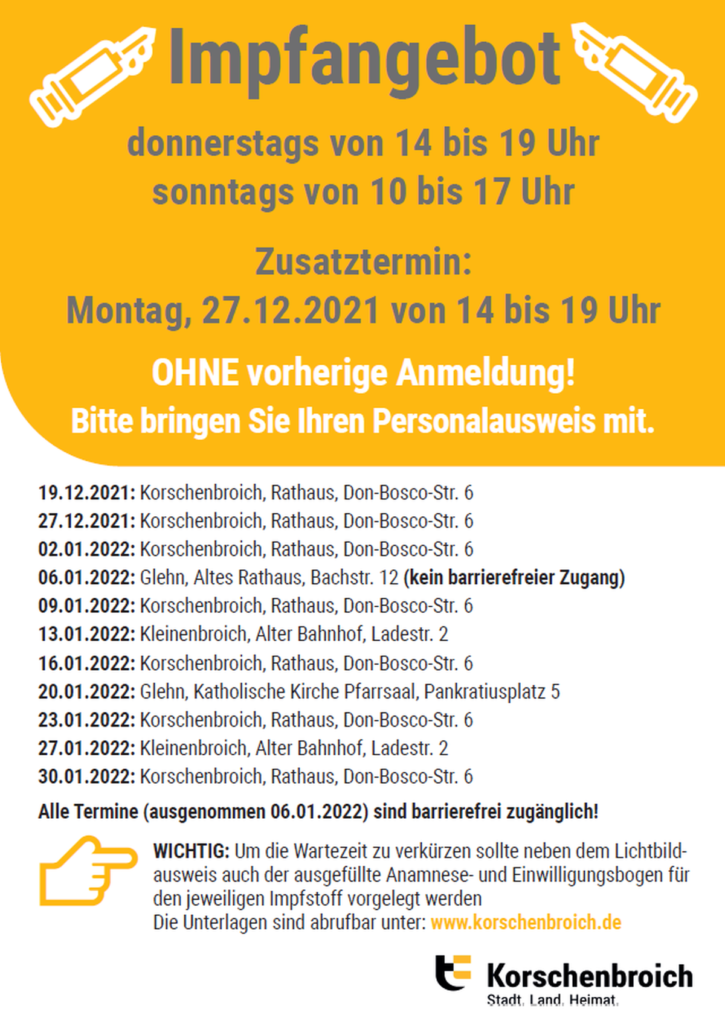 Gleichzeitig möchten wir alle noch ungeimpften TVK-Freunde ermutigen, eines der vielen Impfangebote in unserer Region zu nutzen. Die Stadt Korschenbroich gibt beispielsweise stets die aktuellsten Impfmöglichkeiten unter www.korschenbroich.de bekannt. Darüber hinaus stehen die Hausärzte für Impfungen zur Verfügung.