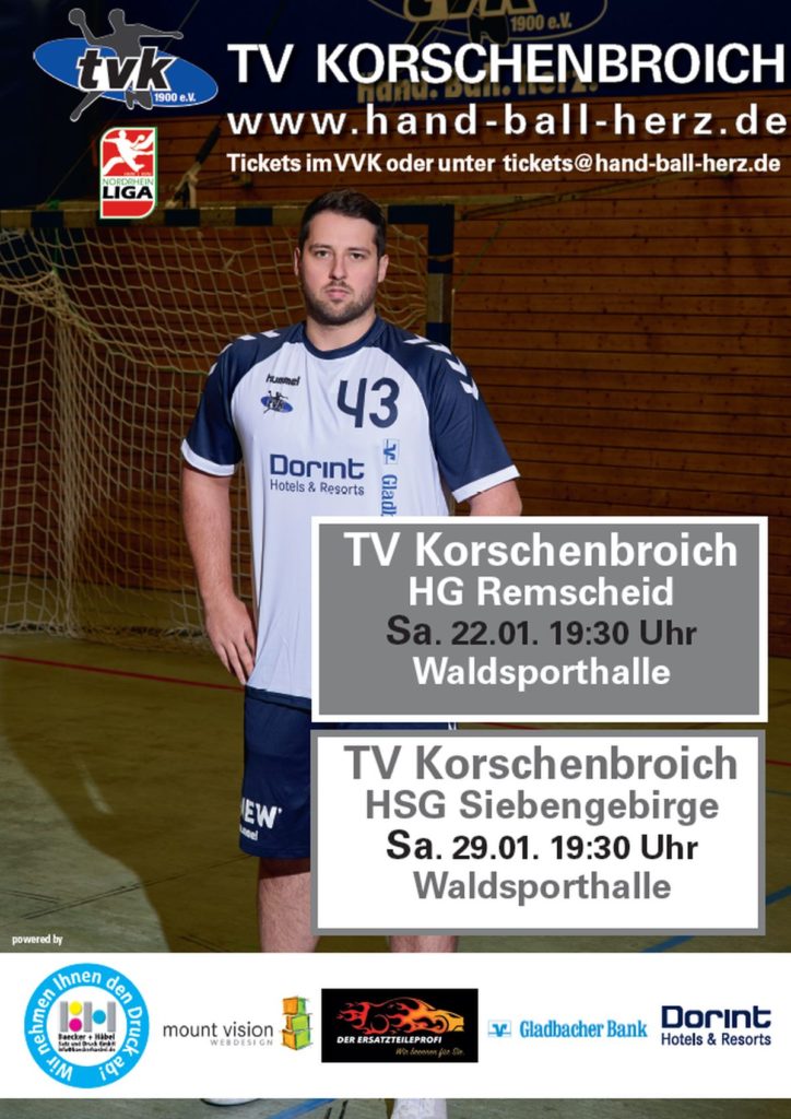 Die Tickets für die beiden kommenden beiden Heimspiele gegen die HG Remscheid am 22.01.22 um 19.30 Uhr und am 29.01.22 um 19.30 Uhr gegen die HSG Siebengebirge, sind ab sofort im VVK in der Buchhandlung Barbers in Korschenbroich erhältlich.