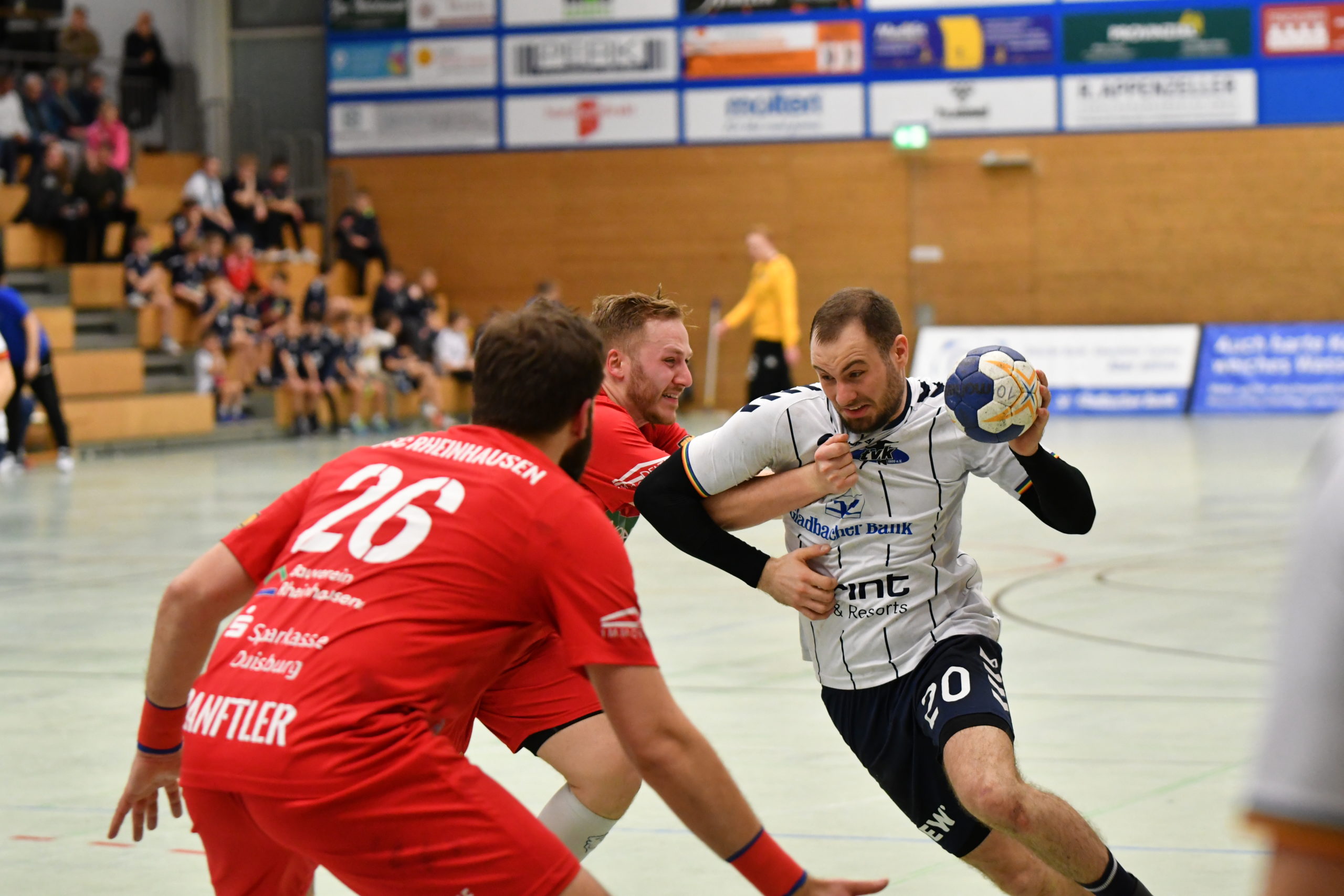 Der US-Nationalspieler Hines war im Hinspiel noch nicht für die SGL aktiv, der TVK konnte diese Begegnung in der Korschenbroicher Waldsporthalle vor 400 Zuschauern mit 33:21 für sich entscheiden. Maxi Tobae avancierte damals mit zehn Treffern zum erfolgreichsten Torschützen, bei den Gästen erzielte Mathis Pötzsch fünf Tore. Dreimal konnte sich bei dieser Begegnung auch Felix Krüger in die Torschützenliste eintragen.