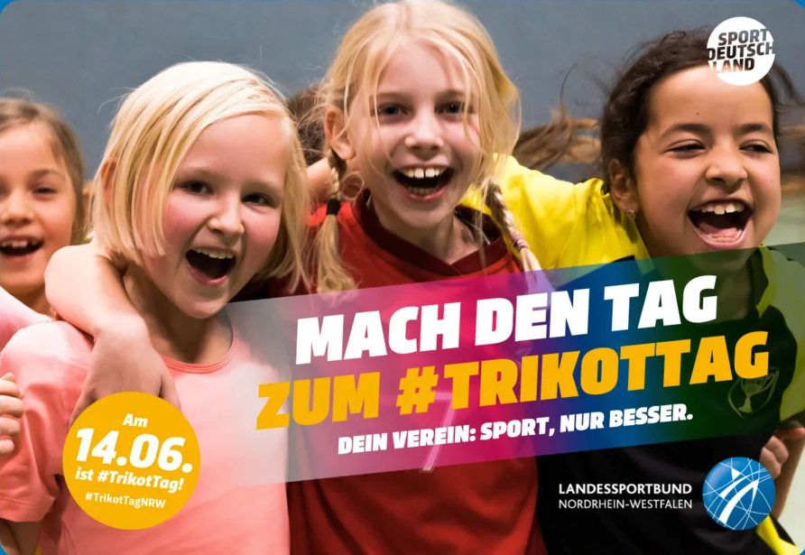 Grund genug für den Landessportbund Nordrhein-Westfalen (LSB NRW) um am Mittwoch, den 14.06.2023 gemeinsam mit seiner Sportjugend alle Sportvereinsmitglieder in NRW dazu aufzurufen, im Trikot Werbung für ihren Verein zu machen. Auch viele andere Landessportbünde werden ebenfalls an diesem Tag den TrikotTag ausloben, so dass die Aktion in diesem Jahr bundesweite Anerkennung findet. Ziel ist es, ein Zeichen für den Vereinssport zu setzen, indem am 14.06.2023 alle Vereinsmitglieder das Trikot, das Polo-Shirt oder den Trainingsanzug des Vereins zur Arbeit, zur Schule, zum Einkaufen und überall in der Öffentlichkeit tragen.