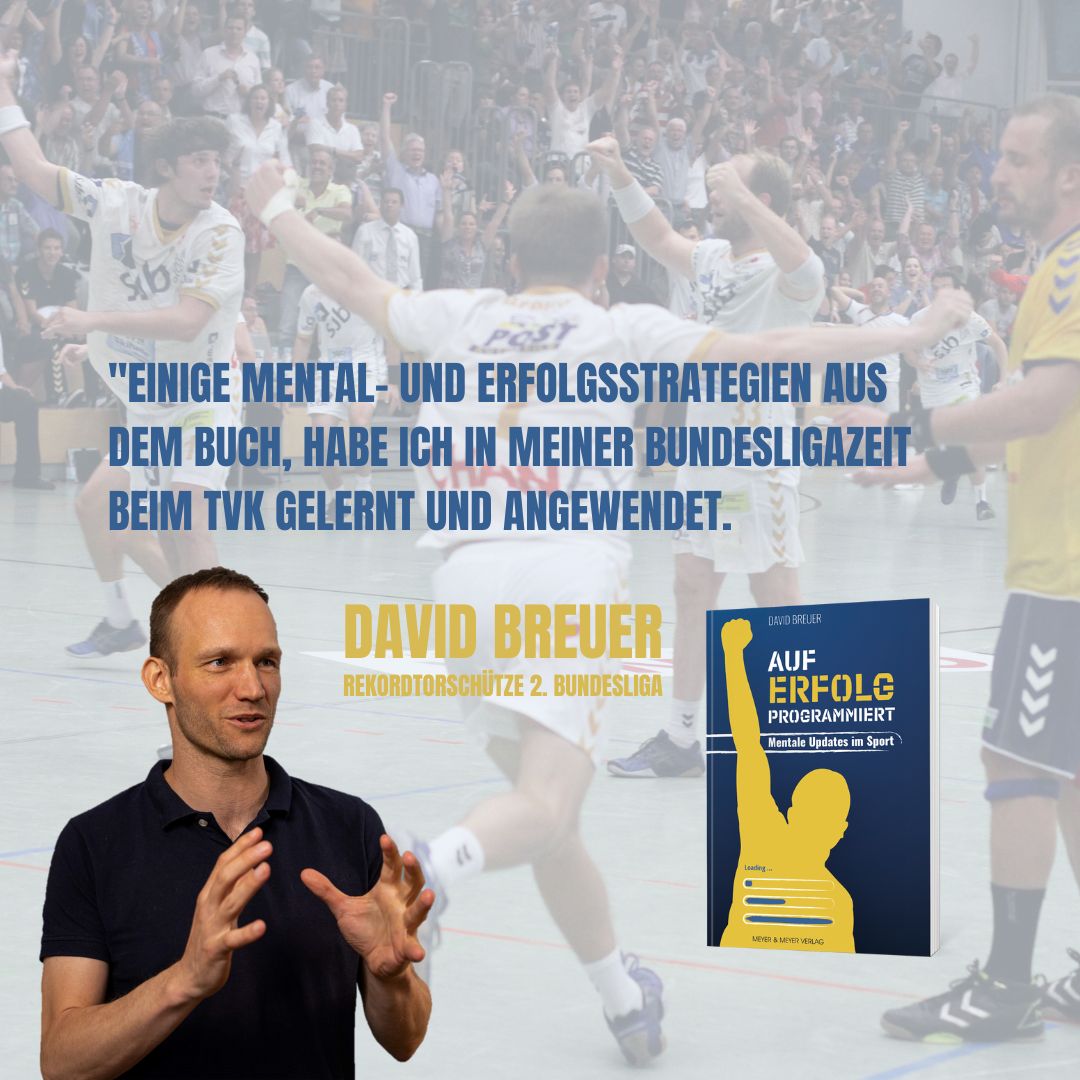 Zwischen 2007 und 2011 spielte David Breuer für den TV Korschenbroich. Der heute 41-Jährige erzielte in der Saison 2009/2010 sage und schreibe 317 in der 2. Handball-Bundesliga für das hand.ball.herz.-Team und ist damit Rekord-Torschütze der zweithöchsten Spielklasse. Am heutigen 21. August 2023 veröffentlicht David Breuer sein erstes Buch mit dem Titel „Auf Erfolg programmiert“.