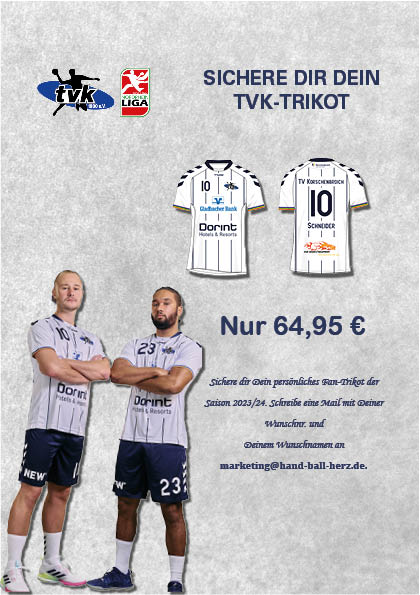 Für alle diejenigen, die sich noch kein Heimtrikot (weiß) im individuellen TVK-Design gesichert haben, möchten wir ab sofort die Gelegenheit dazu geben. Wir haben noch einige Trikots unseres Ausrüsters Hummel im Bestand, die ihr euch bis zum 28.11.2023 mit eurer eigenen Wunschnummer und -name sichern könnt.