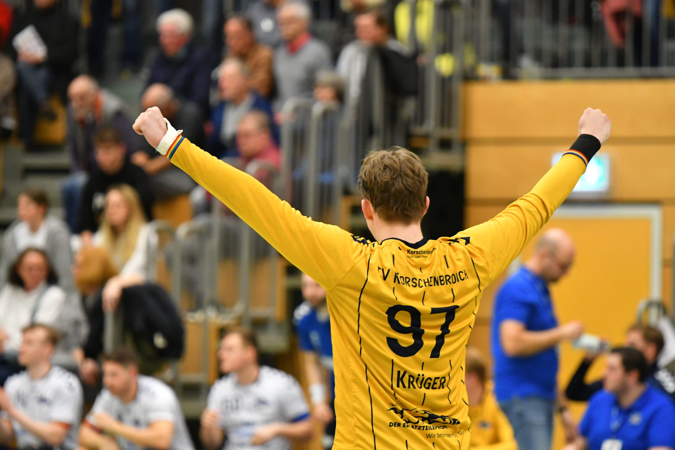 Am Ende konnten sich die Handballer des TV Korschenbroich von seinen Fans in der heimischen Waldsporthalle feiern lassen. Doch bis zum 28:26-Sieg über den OSC Rheinhausen lag ein langer, steiniger Weg. Dabei begann man stark, lag nach vier Minuten bereits mit 4:1 in Führung. Doch in der 12. Minute konnten die Gäste zum 5:5 ausgleichen. Zehn Minuten später lagen die Gäste sogar zum ersten Mal in Führung, der OSC führte mit 9:8 durch einen von Patrik Ranftler verwandelten Siebenmeter. In einer ausgeglichenen ersten Halbzeit hieß es nach dreißig Minuten 11:11-Unentschieden.