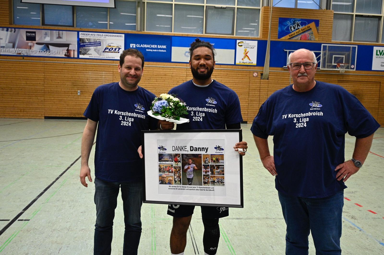 Ein Dankeschön gab es von den beiden TVK-Geschäftsführern Jan Wolf und Klaus Weyerbrock für Max Jäger und Philip Schneider. Das Duo hatte in dieser Saison bei dem einen oder anderen Spiel ausgeholfen und dafür gesorgt, dass Coach Dirk Wolf eine weitere Alternative im Tor oder am Kreis zur Verfügung stand. „Wir sind Max und Philip sehr dankbar, dass sie eingesprungen sind. Vielen Dank für diesen Einsatz“, sagte Klaus Weyerbrock.