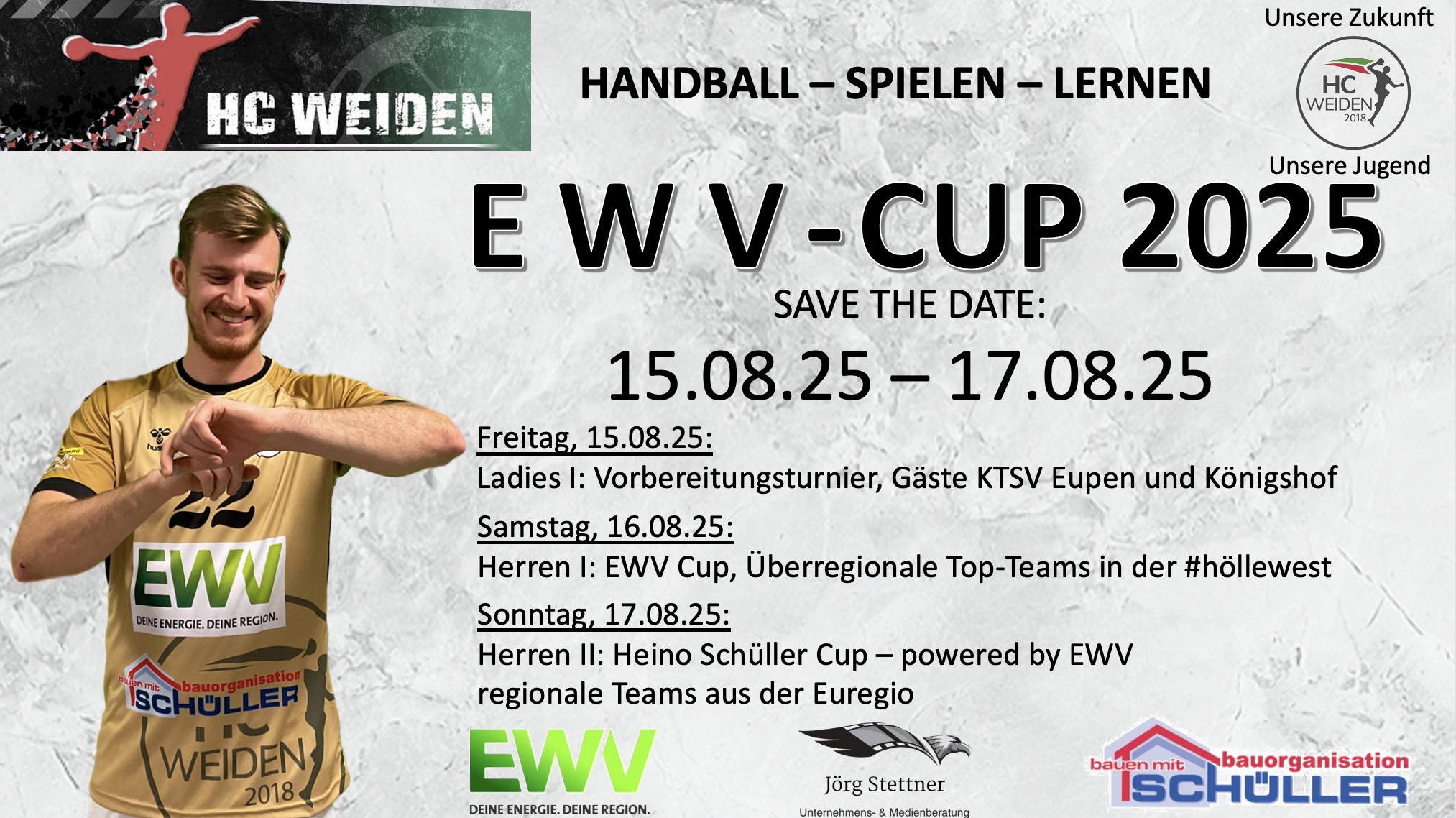 Am Samstag startet der TV Korschenbroich wieder beim vom HC Weiden organisierten EWV-Cup in der Sporthalle Würselen. Im vergangenen Jahr konnte der TV Korschenbroich dort den 3. Platz belegen. In diesem Jahr findet das Turnier nur an einem Tag teil, Nachbar BTB Aachen sowie Titelverteidiger Longericher SC nehmen an diesem Jahr nicht teil. Dennoch warten attraktive Gegner auf das Team von Frank Berblinger. In der Gruppe B trifft der TVK auf HuBo Handball aus dem belgischen Hasselt sowie Drittliga-Aufsteiger Interaktiv.Handball Düsseldorf/Ratingen. In der Gruppe A trifft Gastgeber HC Weiden auf den belgischen Klub KTSV Eupen, der den EWV-Cup 2023 gewinnen konnte, und den luxemburgischen Klub Handball Esch. Die Gruppenspiele um den EWV-Cup beginnen um 12.30 Uhr. Die Finalrunde startet um 18 Uhr mit dem Spiel um Platz fünf. Nach dem Spiel um Platz drei ab 18.55 Uhr ist das Finale für 19.50 Uhr angesetzt. Alle Spiele des EWV-Cups werden am Samstag auf dem Youtube-Kanal des HC Weiden live übertragen.