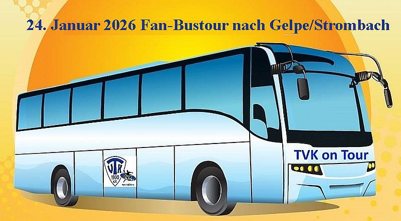 Für das Meisterschaftsspiel am Samstag, 24. Januar 2026 um 19.45 Uhr zur 100 km entfernten HC Gelpe/Strombach wird eine Mitfahrgelegenheit im Mannschaftsbus für TVK-Fans angeboten.